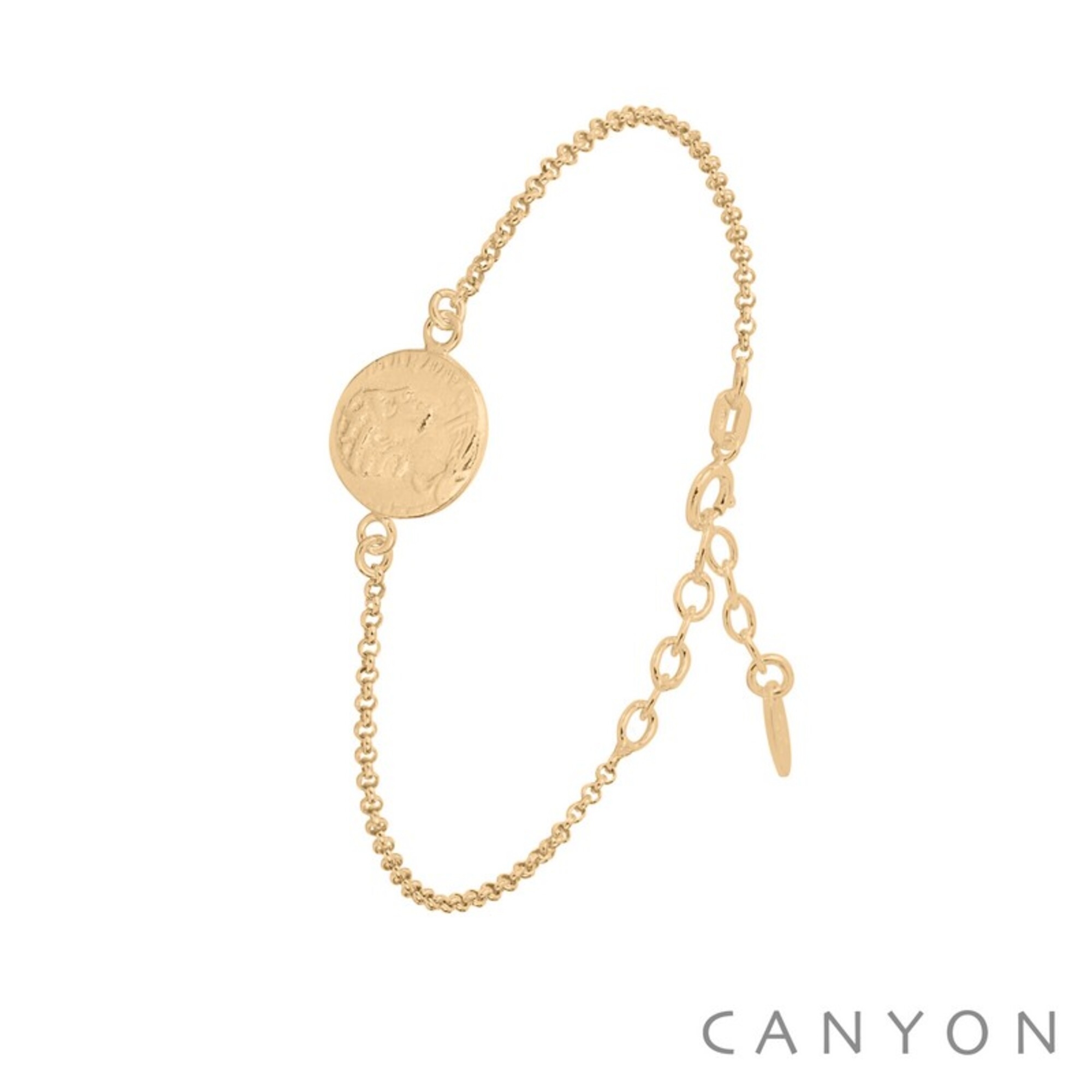 Bracelet composé en son centre d'une pièce style antique et d'une chainette doré 1 micron - Dimensions : 19 cm x 1,2 cm - Poids total (g) : 3,75