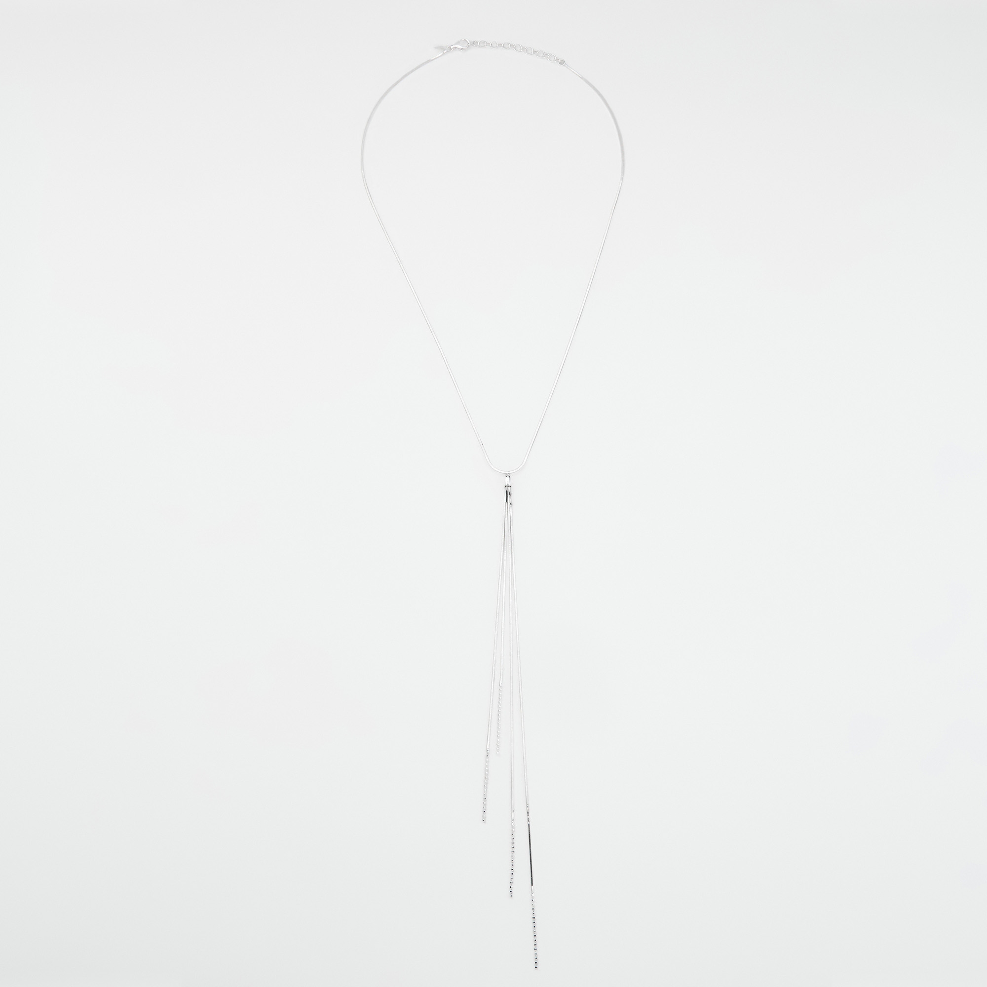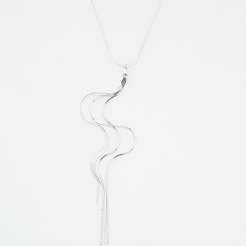 Collier en argent décoré d'un pendentif constitué de longues chainettes.