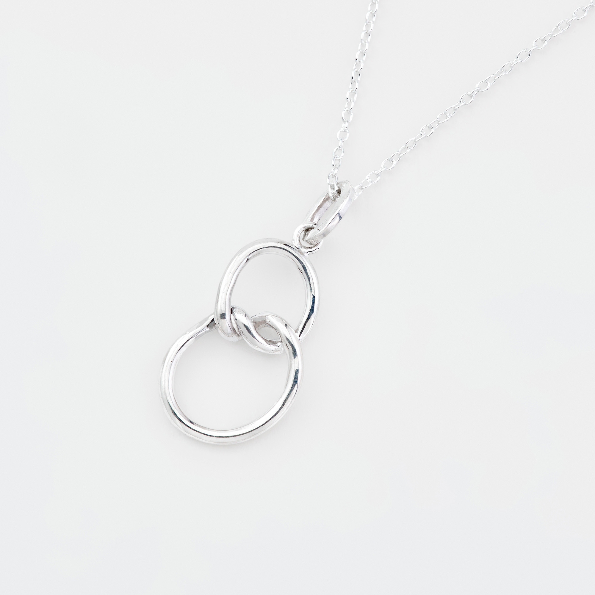 Collier en argent composé d'un pendentif formé de 2 anneaux ovales mêlés et d'une chainette fine en argent.