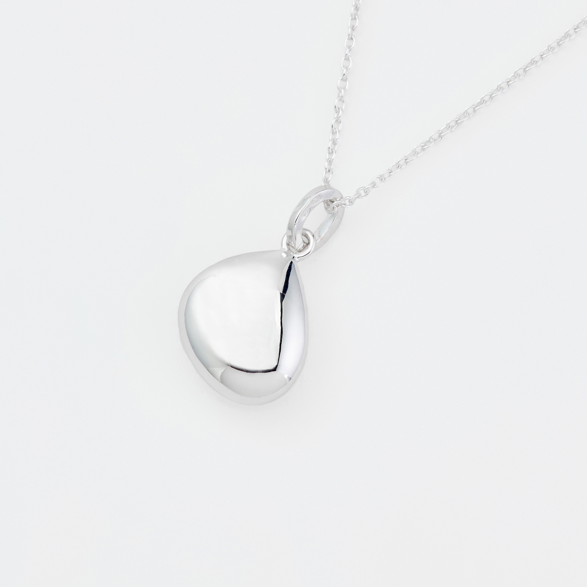 Collier en argent composé d'un pendentif en forme de goutte et d'une chainette fine en argent.