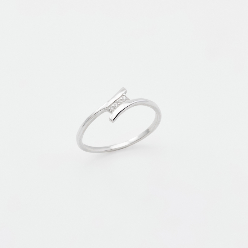 Bague en argent composé de 2 anneaux fins qui se croisent et sont séparés par 3 mini oxydes blancs.