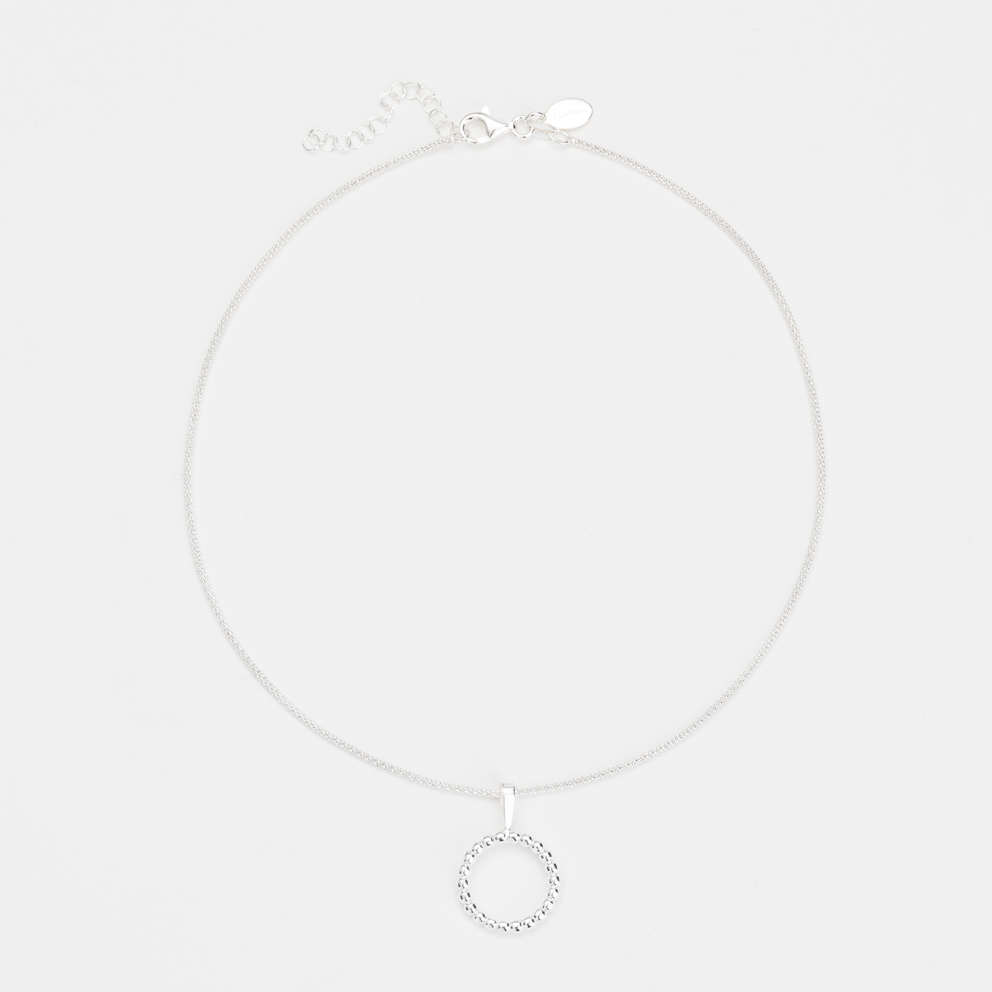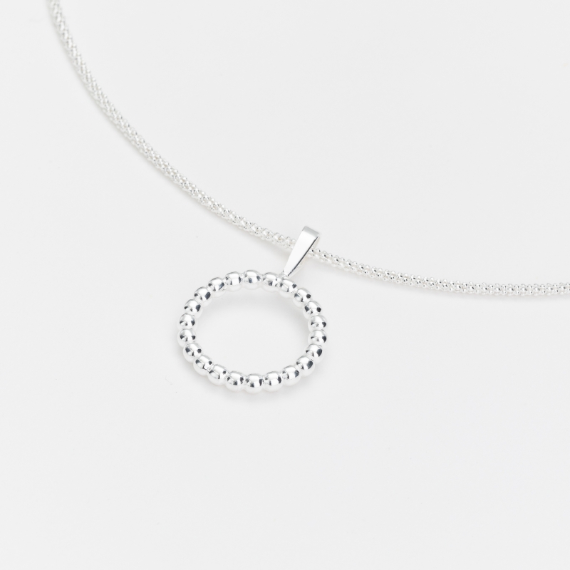Collier en argent composé d'une chaine et d'un petit pendentif rond formé de boules.