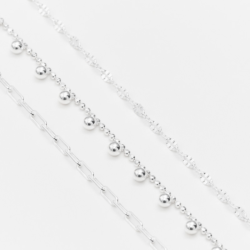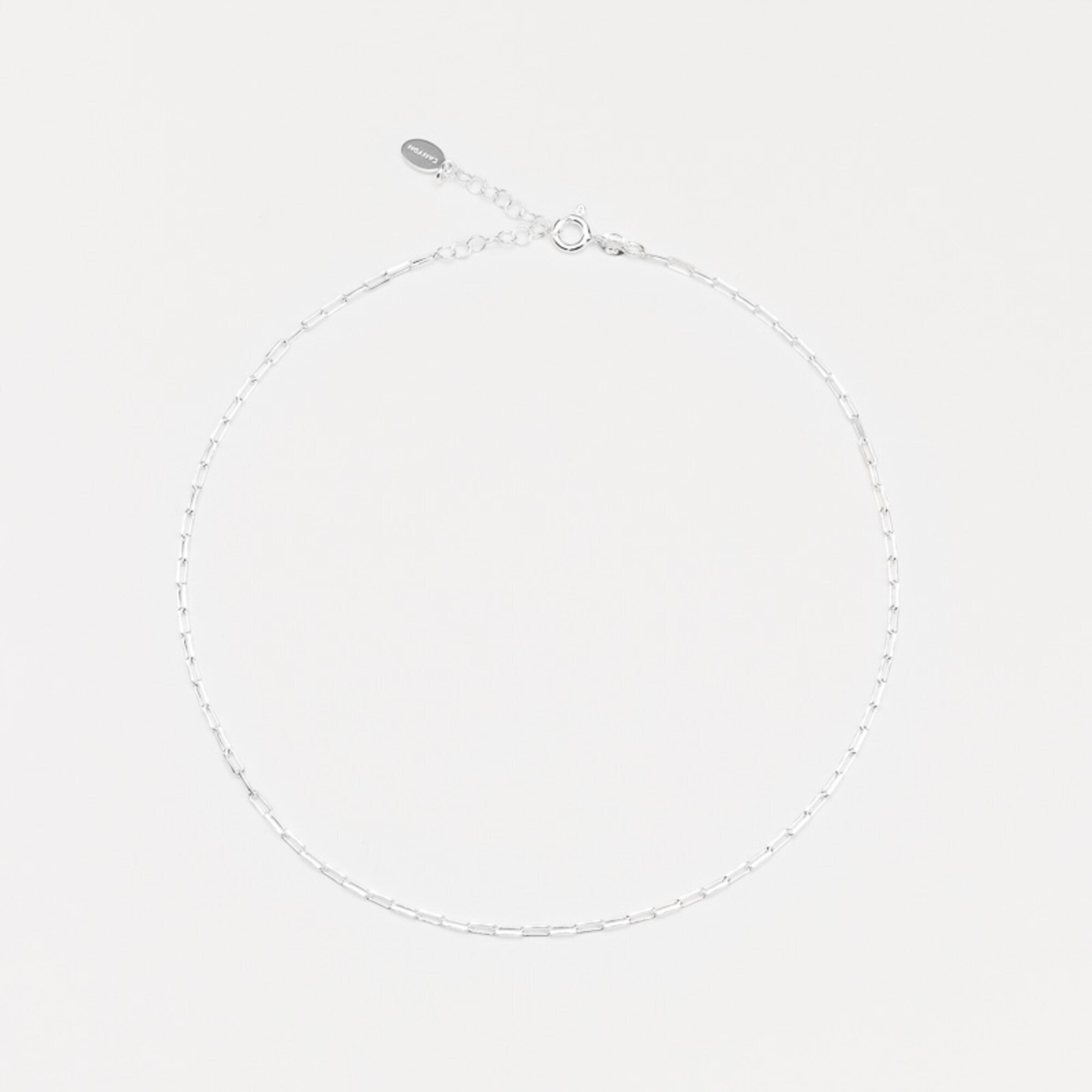 Collier en argent composé d'une chainette forée de petits rectangles fins.
