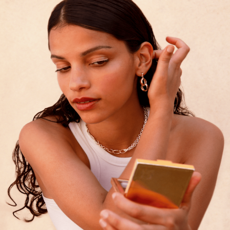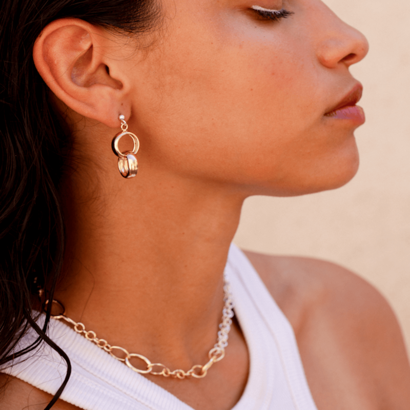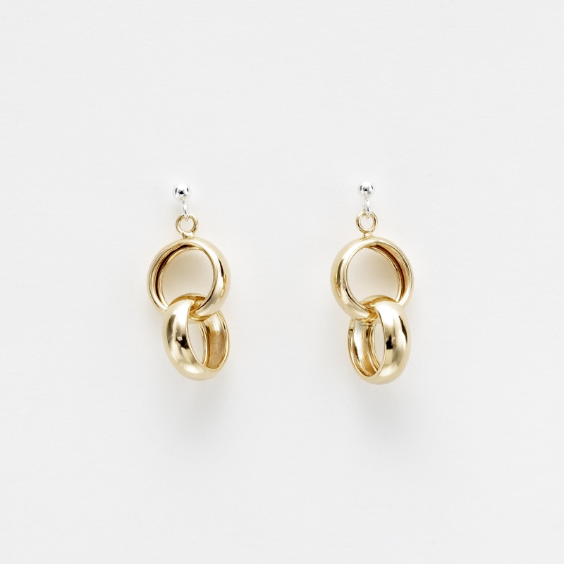 Boucles d'oreilles pendantes en agrent et plaqué or sur argent composées de 2 petits cercles dodus.