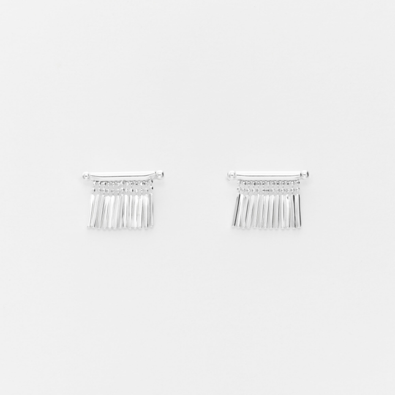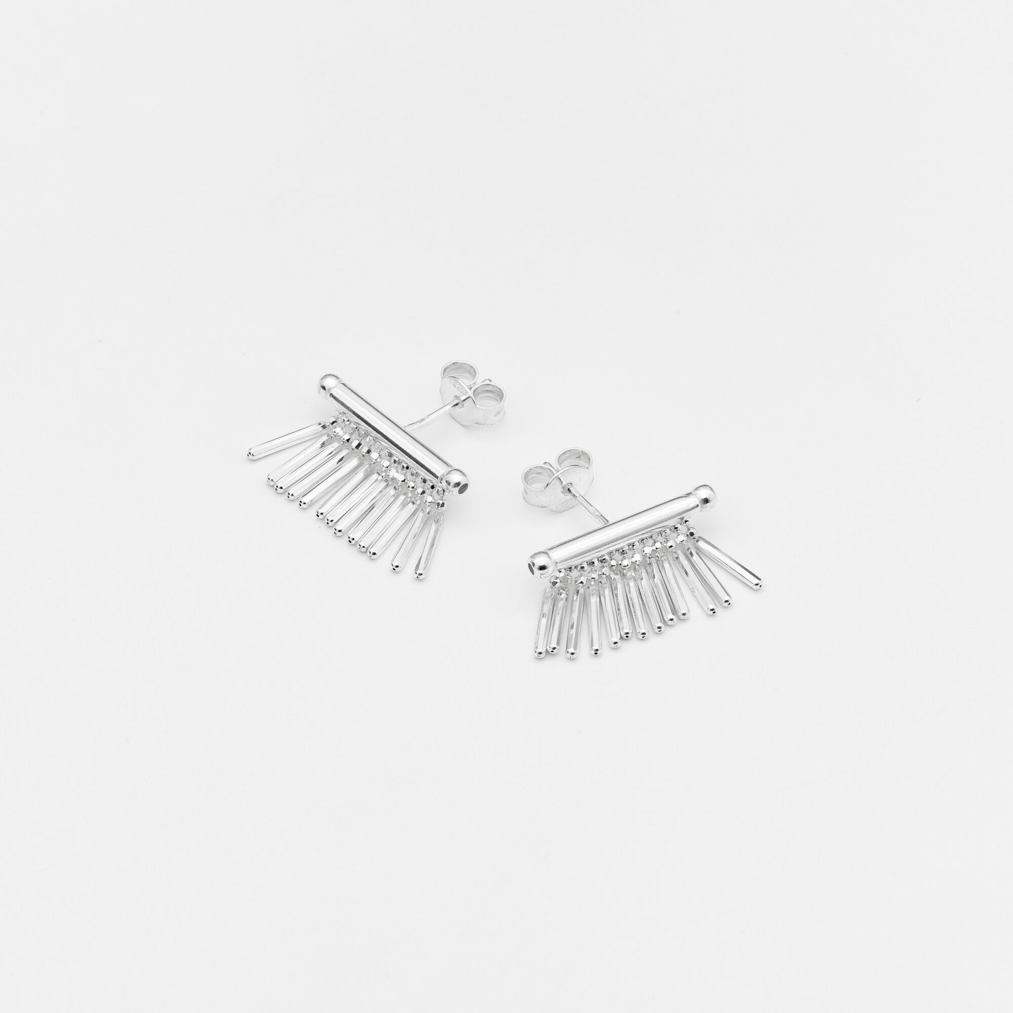 Boucles d'oreilles en argent puces composées d'une barre arrondie décorée de microboules et de mini batonnets pendants.