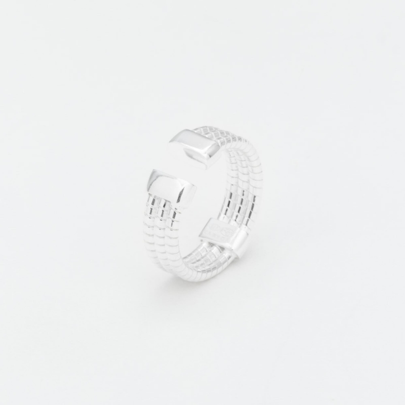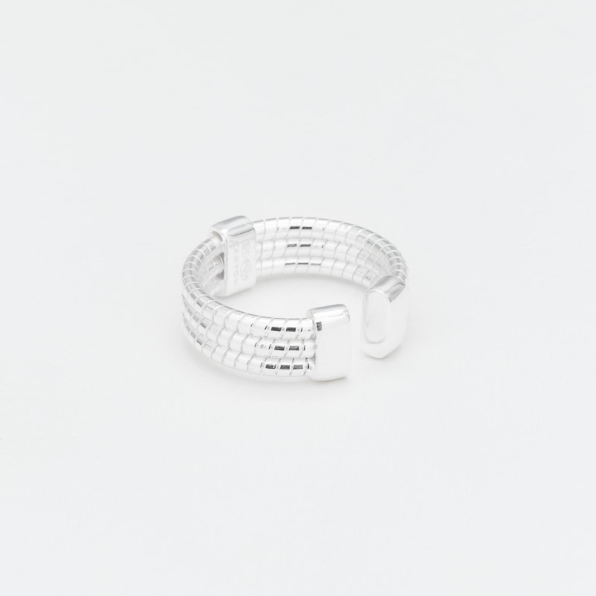 Bague en argent formée par un anneau articulé toi et moi qui se termine par 2 petites pièces arrondies.