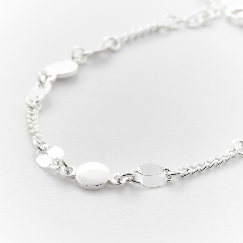 Bracelet en argent de 2 fines chainettes décorées de 3 ronds.