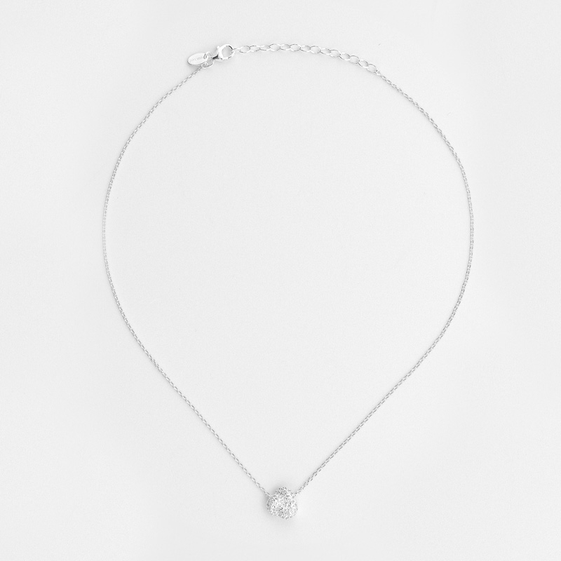 Collier en argent composé d'un pendentif décoré de 3 anneaux imbriqués et dodus pavés d'oxydes blancs sur une chainette fine