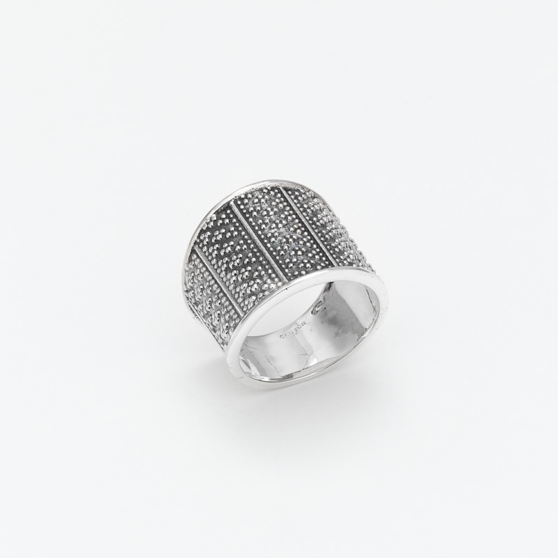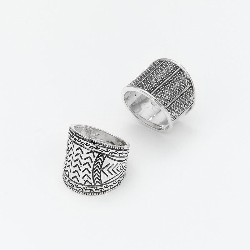 Bague en argent légèrement oxydé vieilli large et travaillé