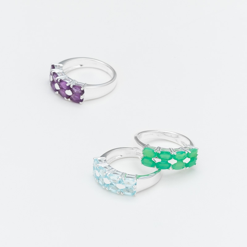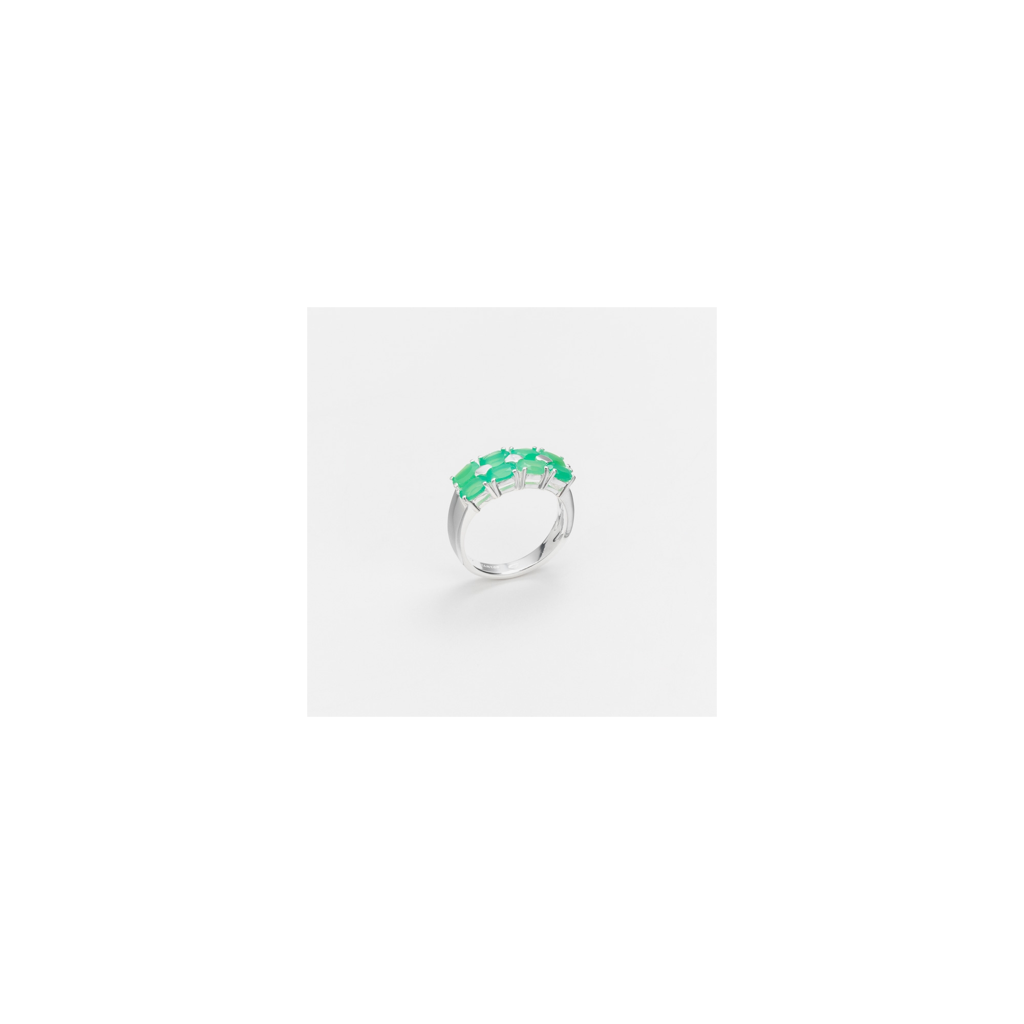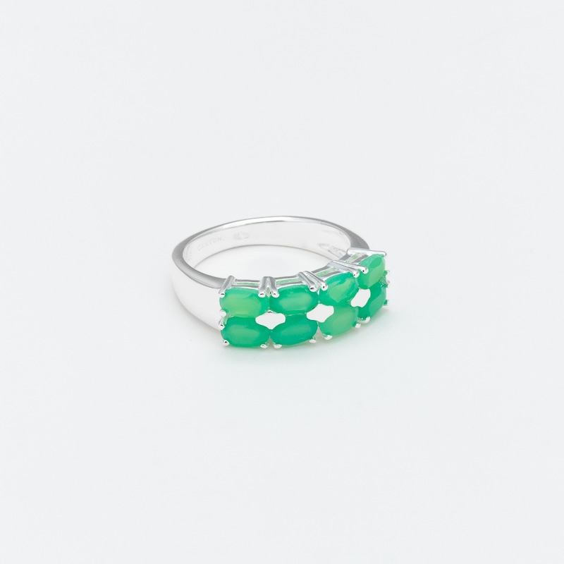 Bague en argent décorée de 2 rangs de 4 calcédoines chrysopraze