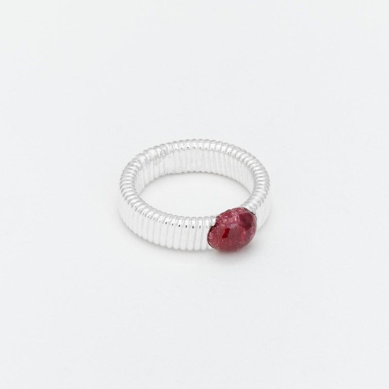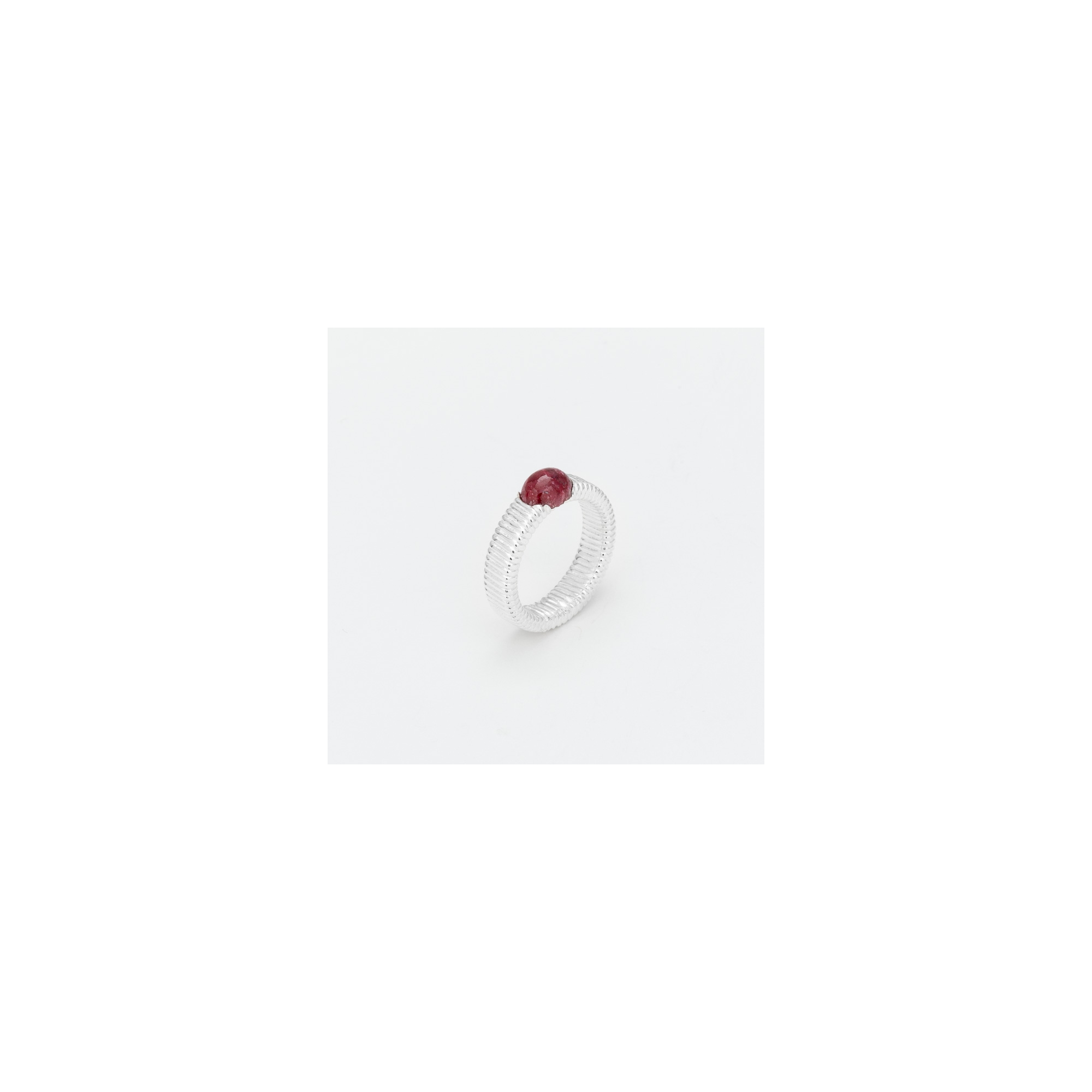 Bague en argent à l'anneau décoré de fins godrons et en son milieu d'un rubis indien ovale