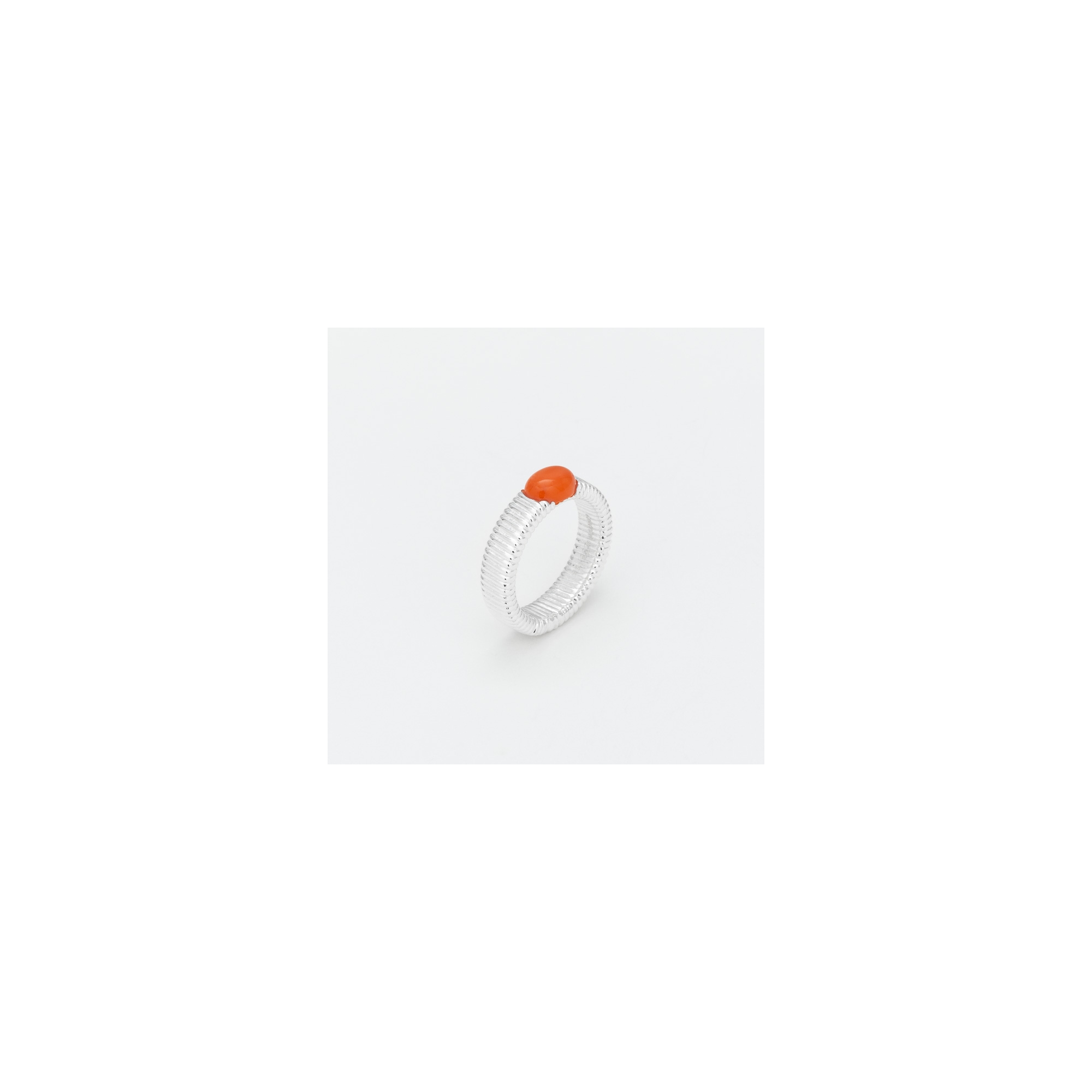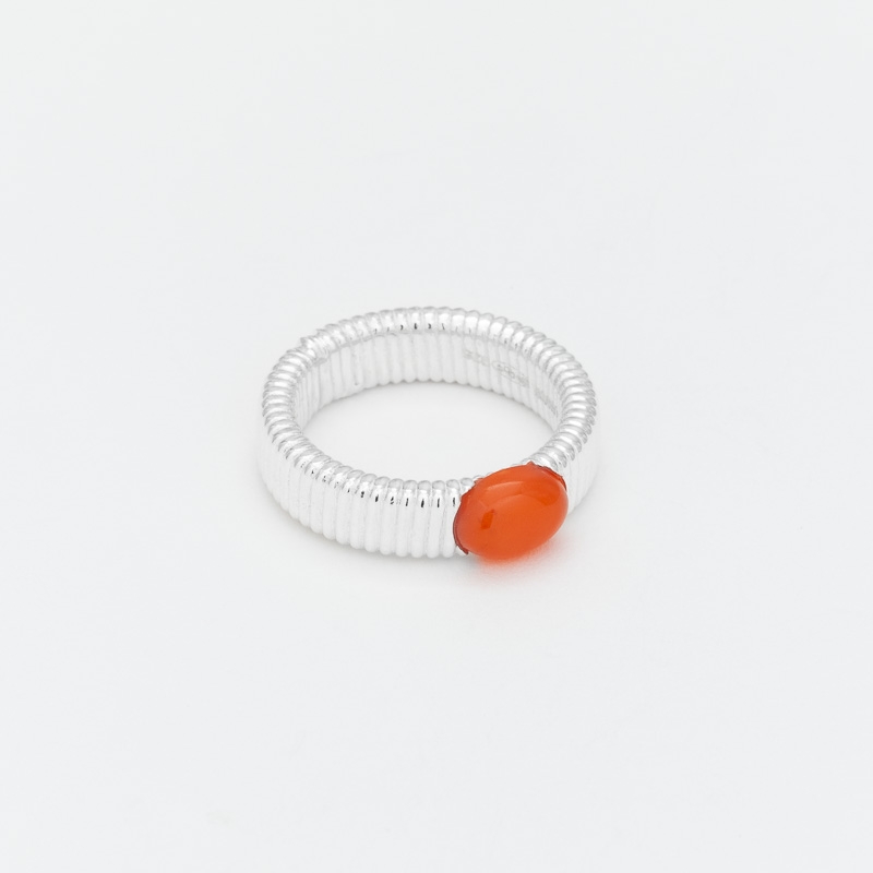 Bague en argent à l'anneau décoré de fins godrons et en son milieu d'une cornaline ovale