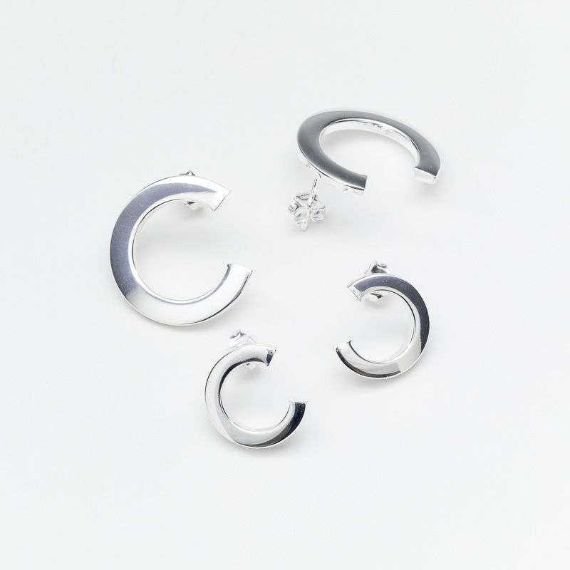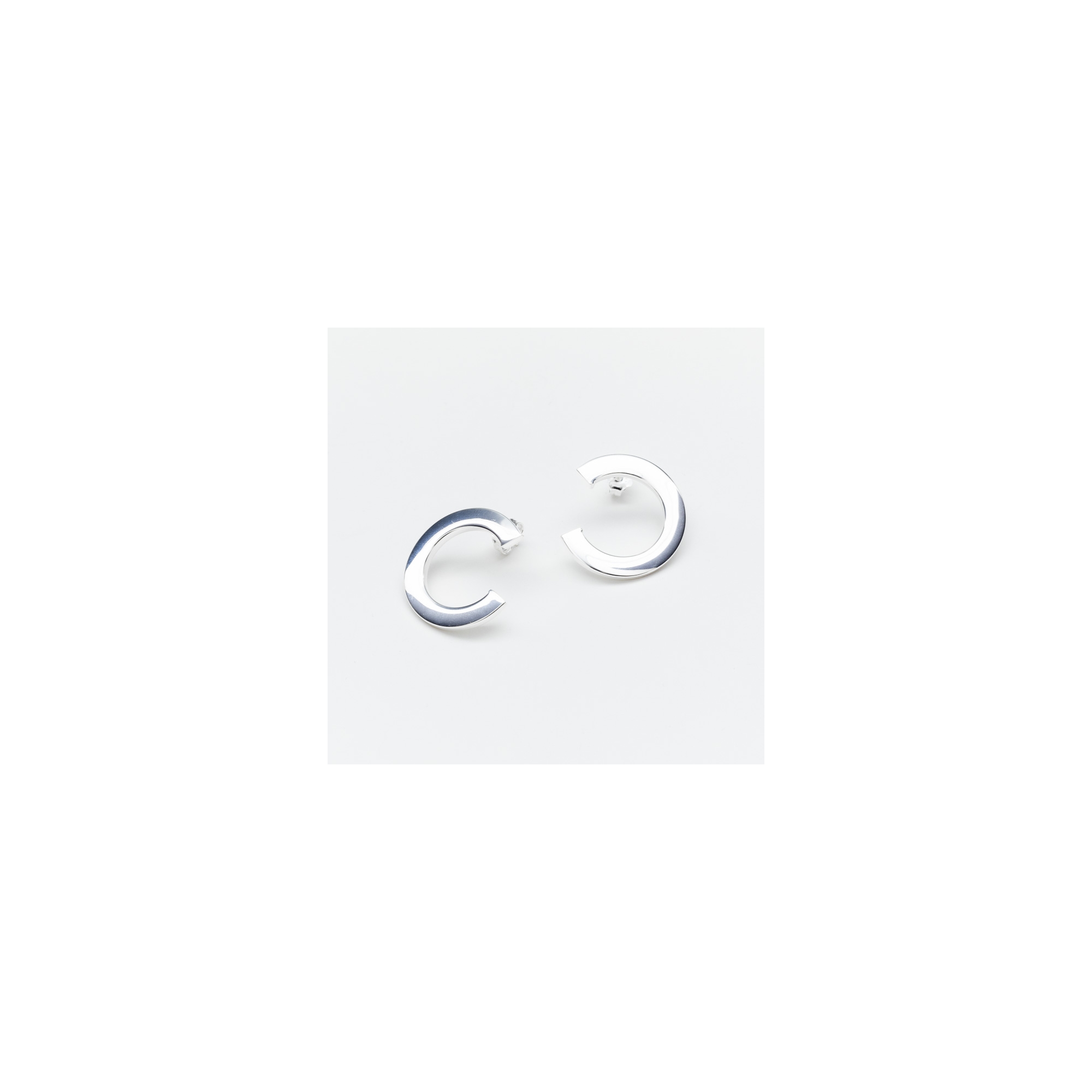 Boucle d'oreille puces en argent constituée d'un grand cercle plat ouvert.