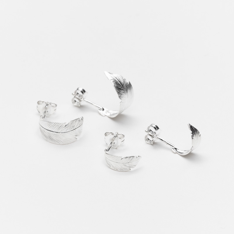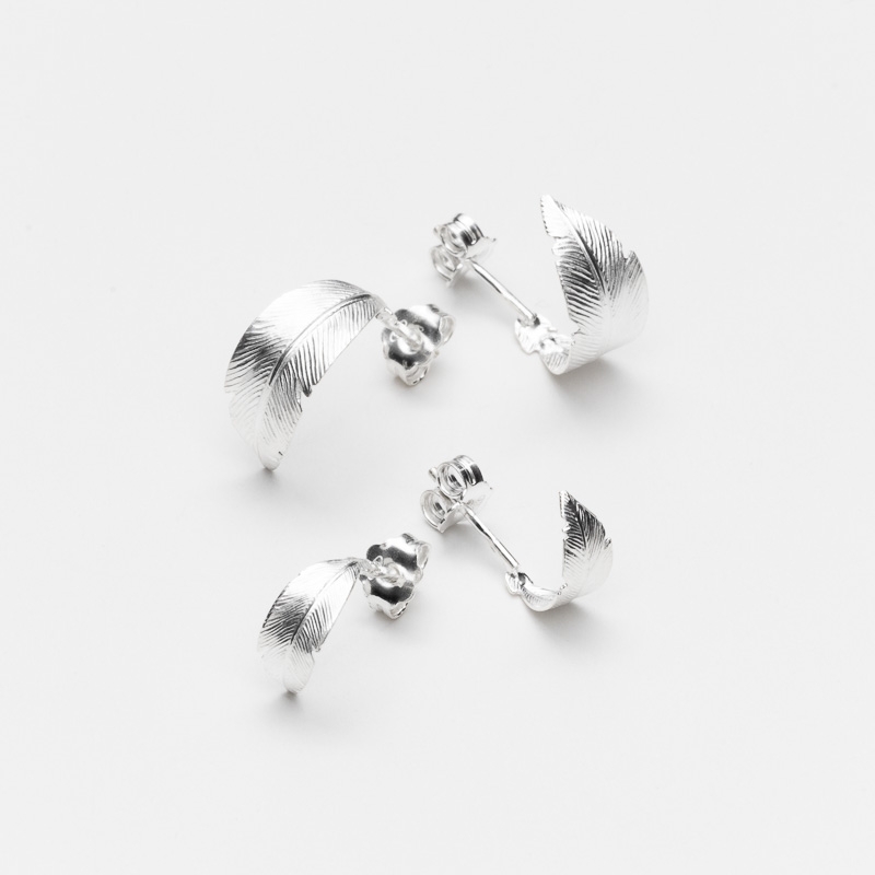Boucles d'oreille créoles en argent en forme de feuille moyenne