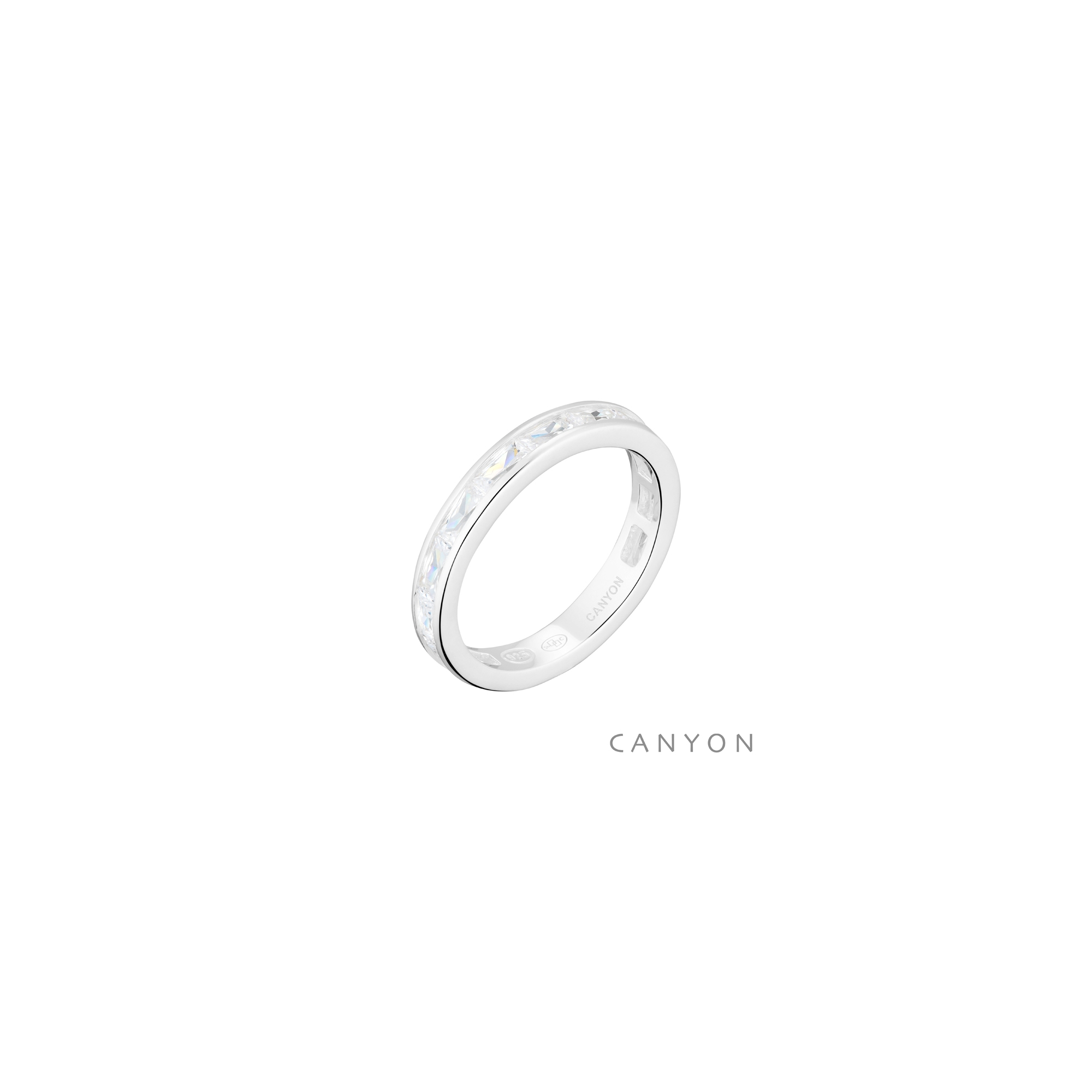 Bague en argent alliance decorée de petits oxydes rectangles.
