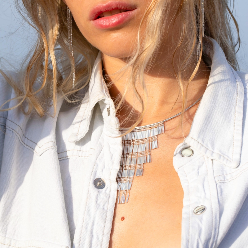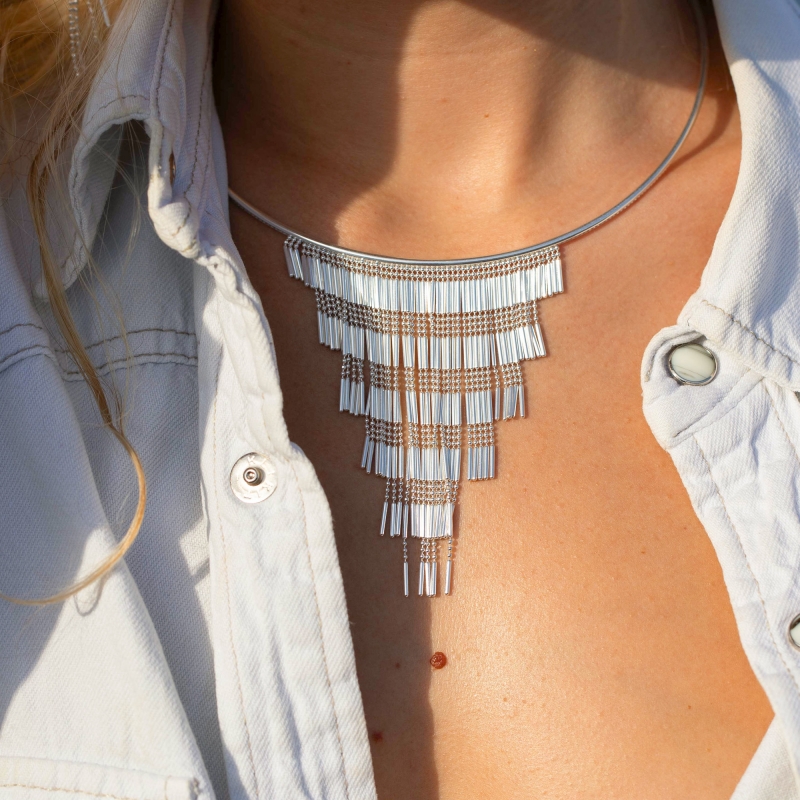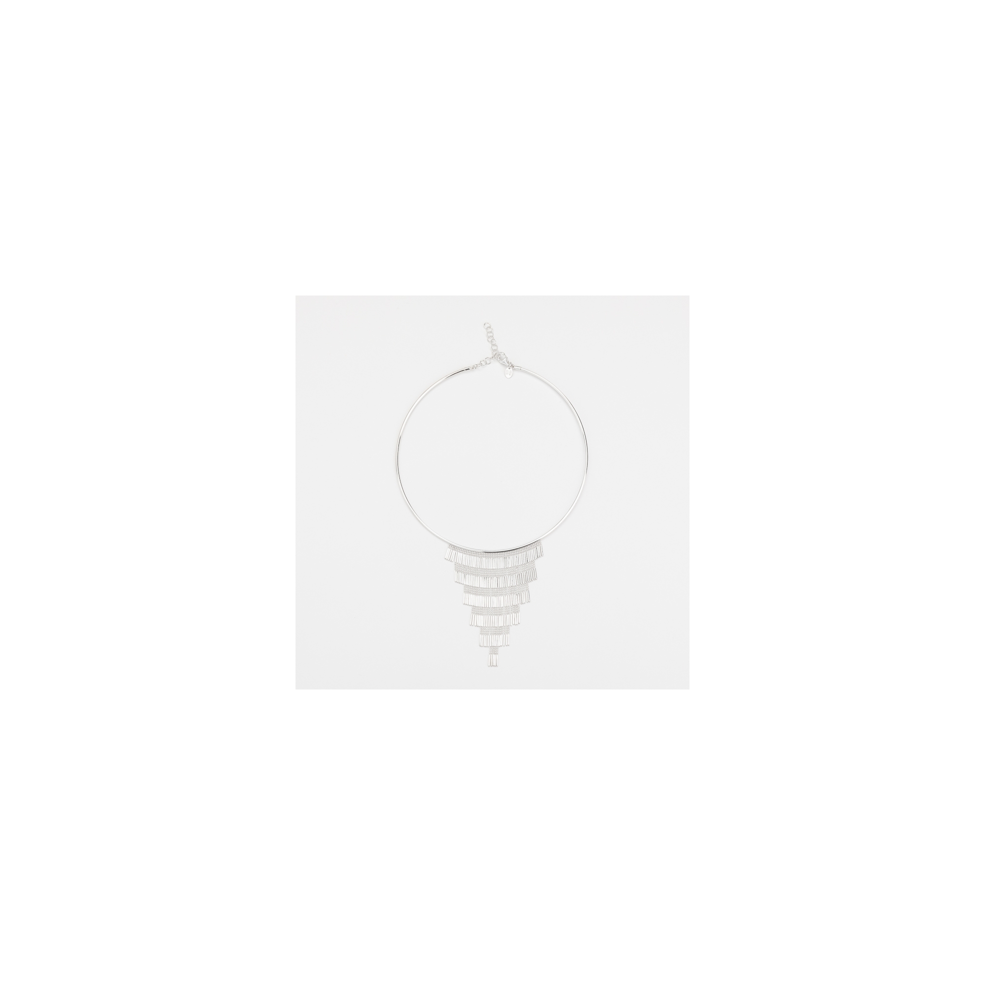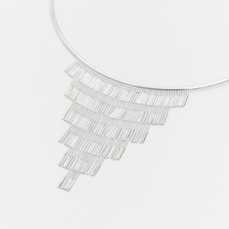 Collier en argent formé de multifils en triangle montés sur un arceau fin .