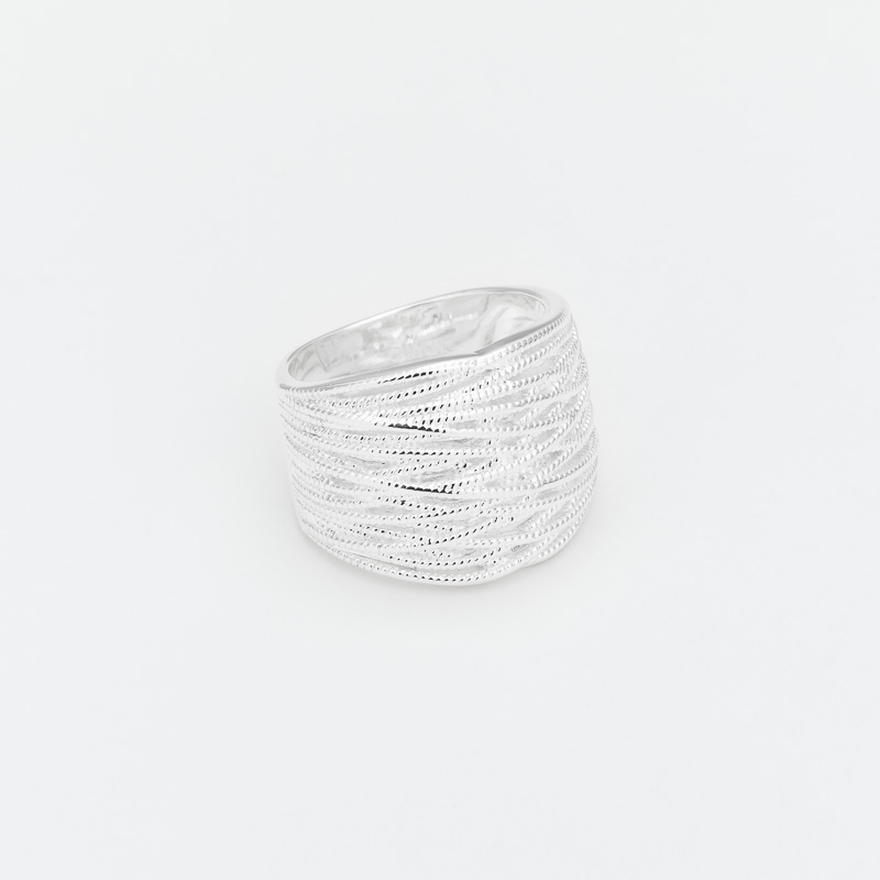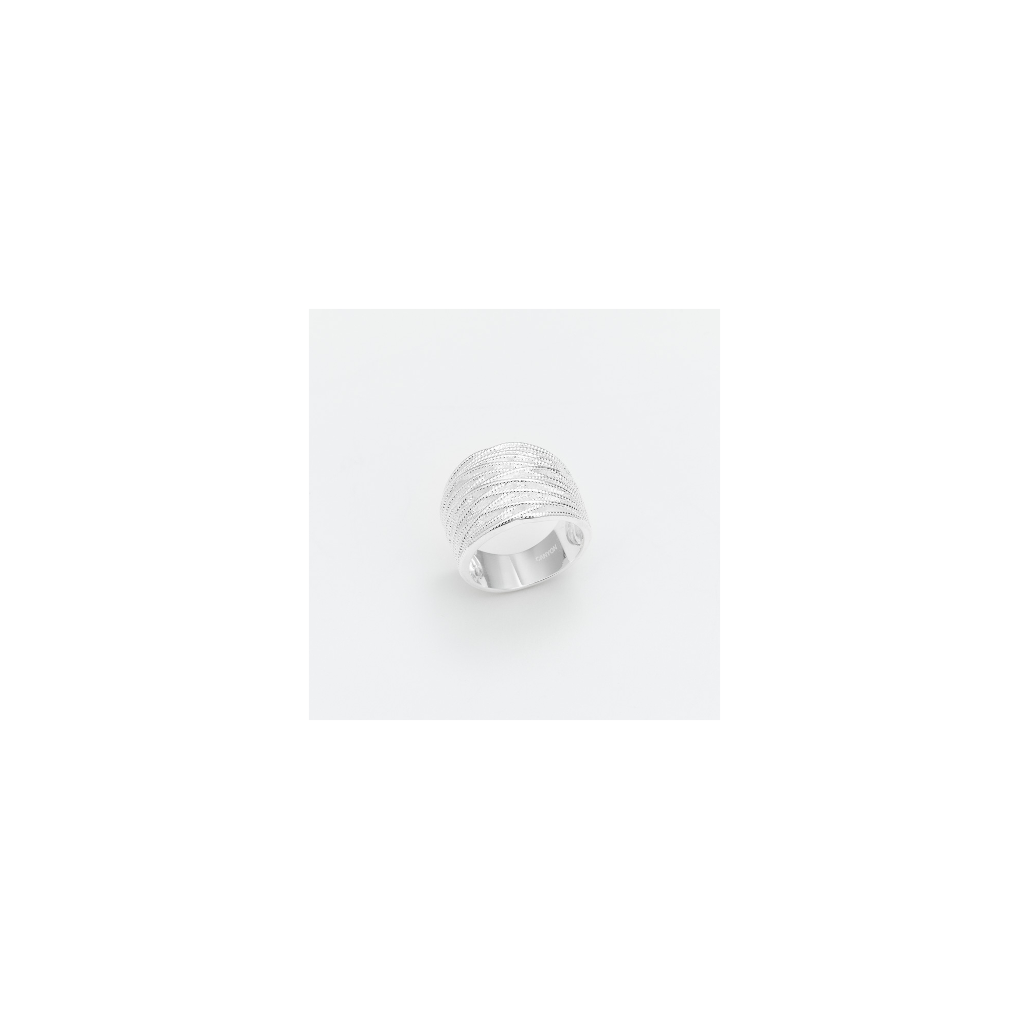 Bague large anneau en argent décoré de fils fins striés et emmêlés