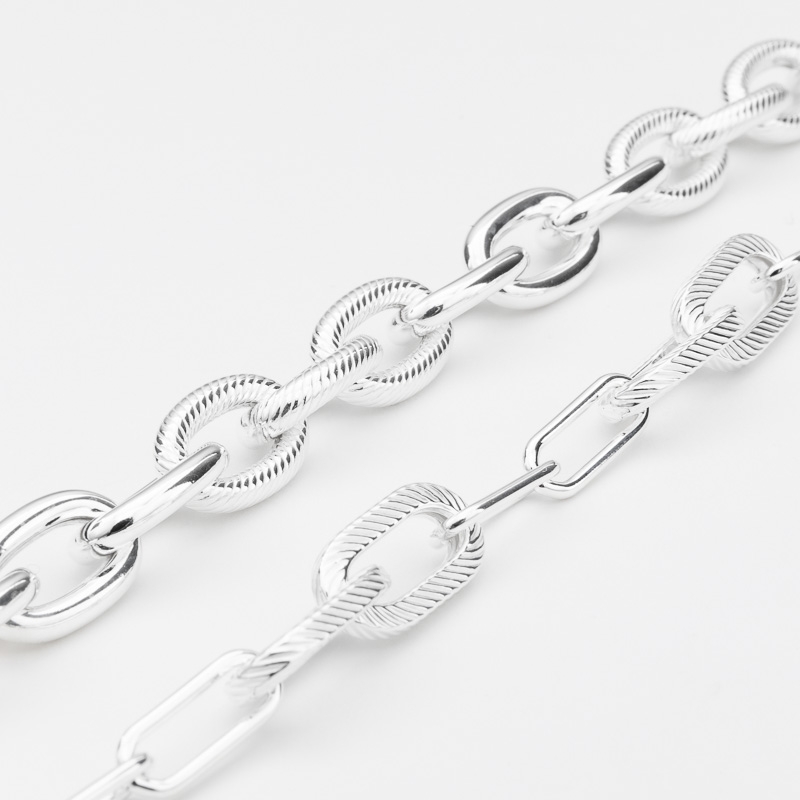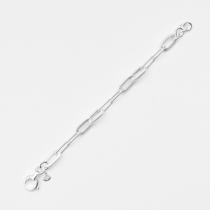 Bracelet en argent constitué d'anneaux rectangles aux angles arrondis lisses et striés