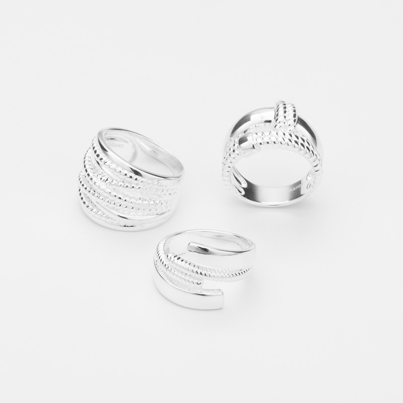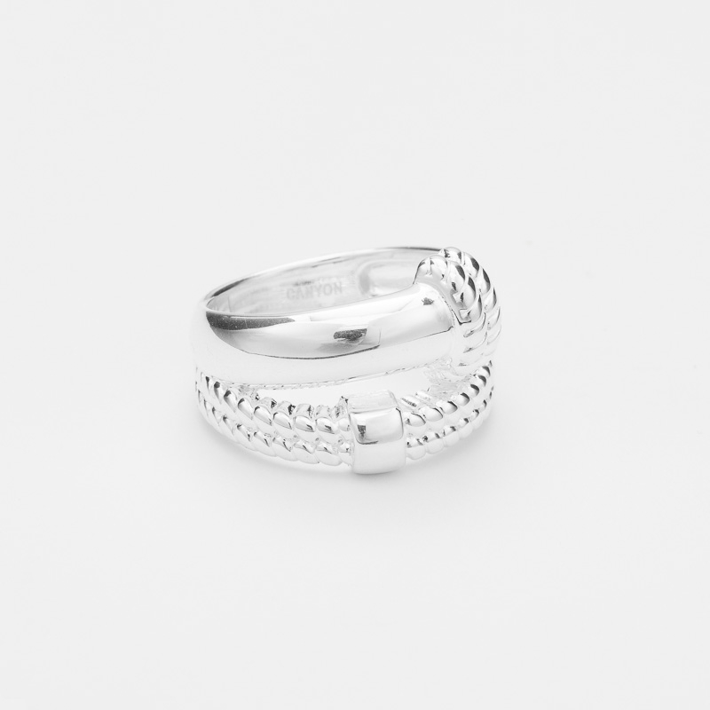 Bague en argent composée de 2 anneaux un lisse décoré de 2 fils travaillés et un travaillé décoré de 2 fils lisses