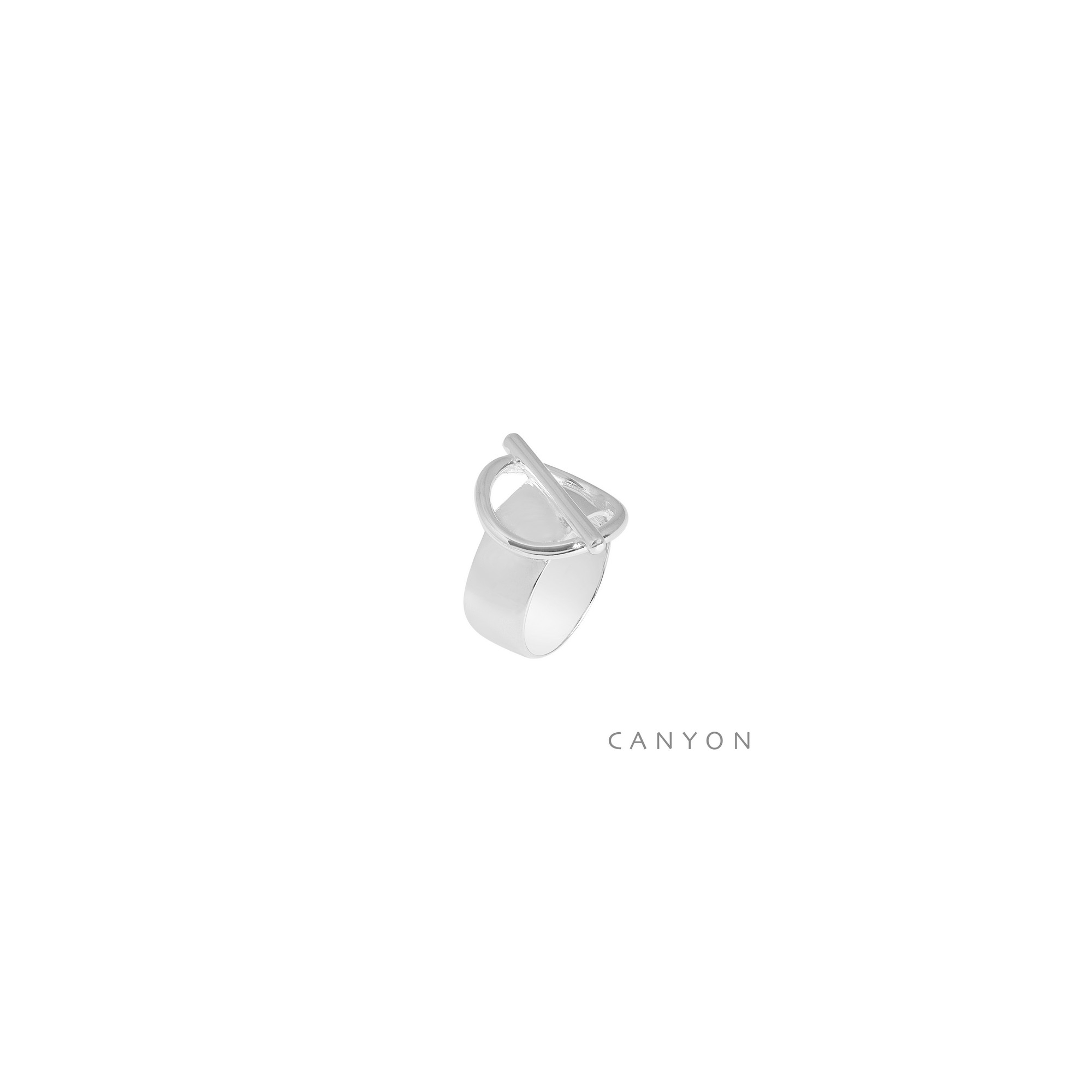 Bague argent constituée d'un anneau large et plat décoré d'un cercle et d'une barre ronde en biais