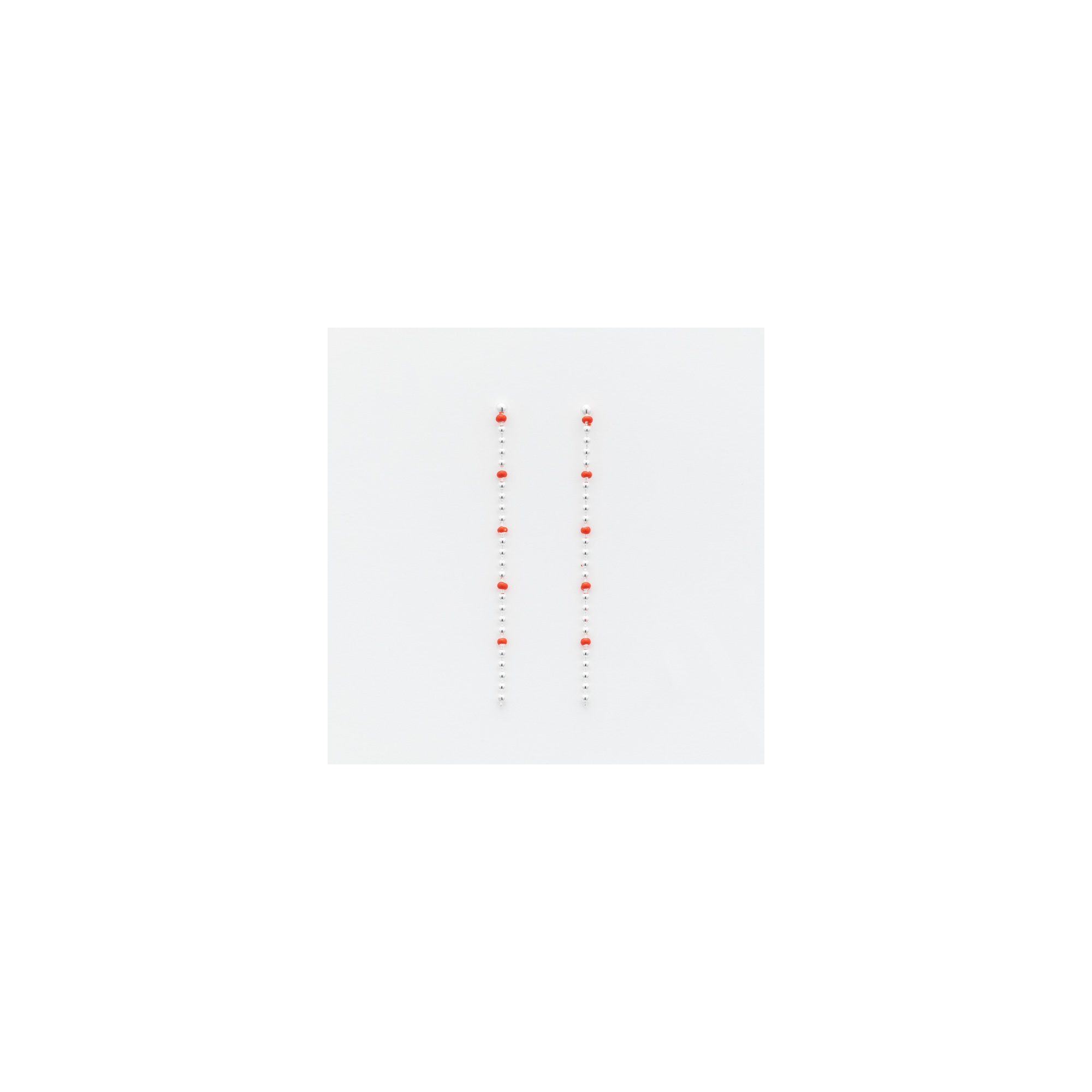 Boucles d'oreilles en argent pendantes composées de microboules dont 5 de laque rouge orange.
