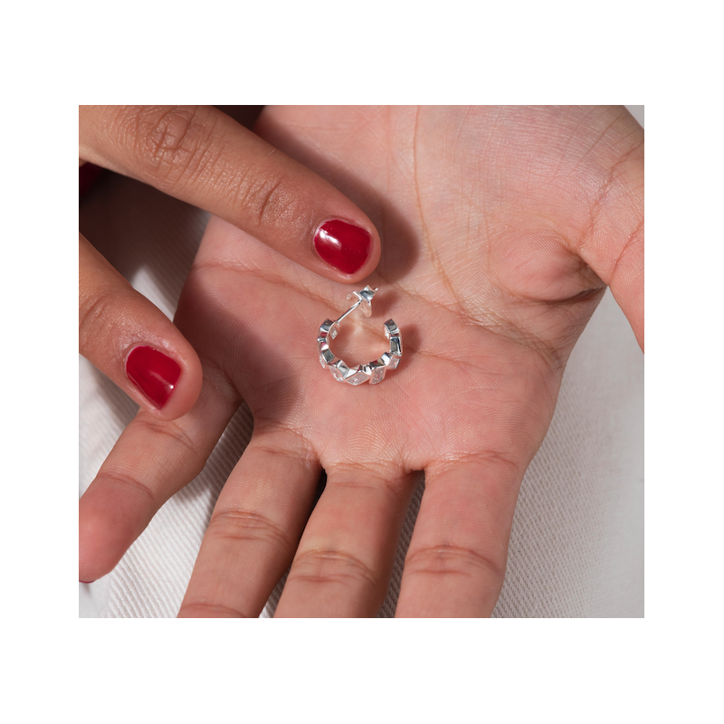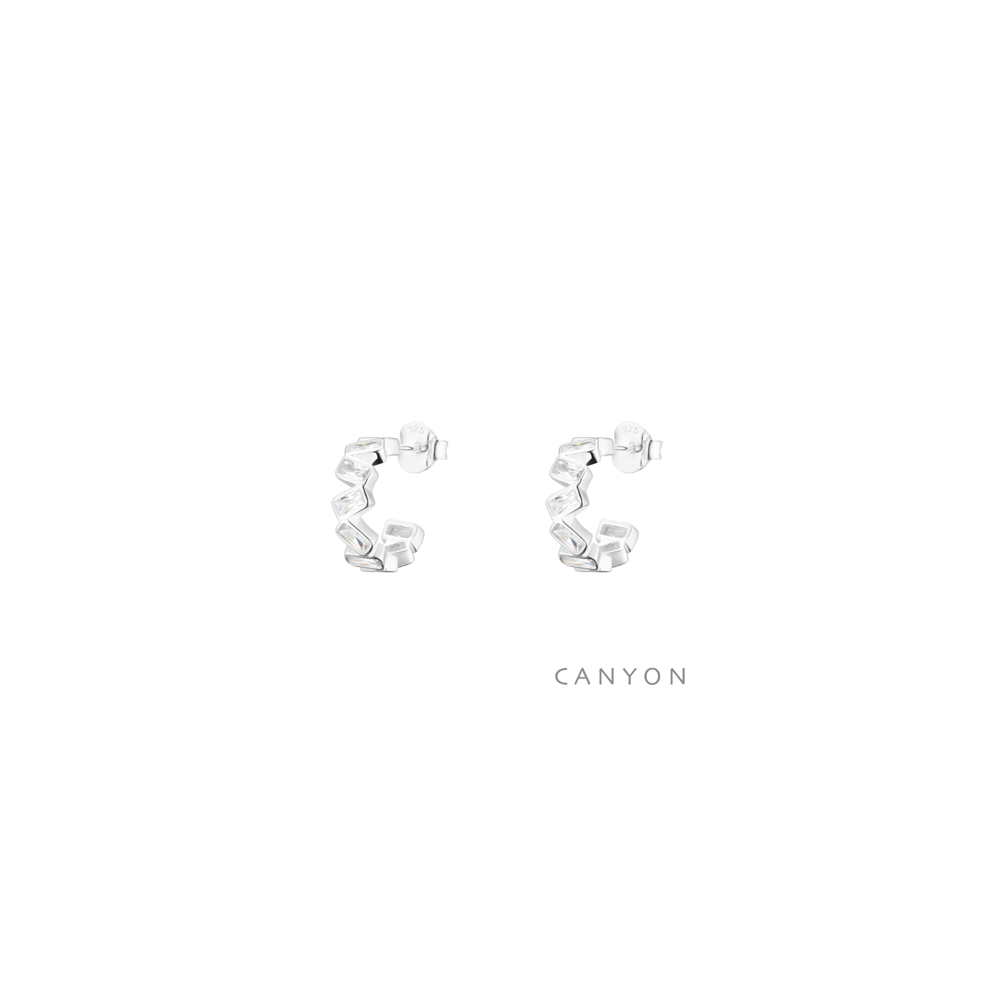 Boucles d'oreilles créoles en argent et oxydes blancs rectangle en quinconce.