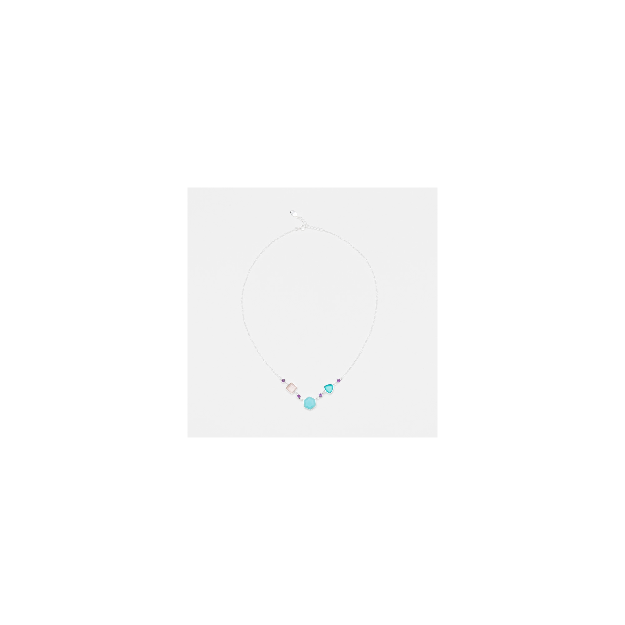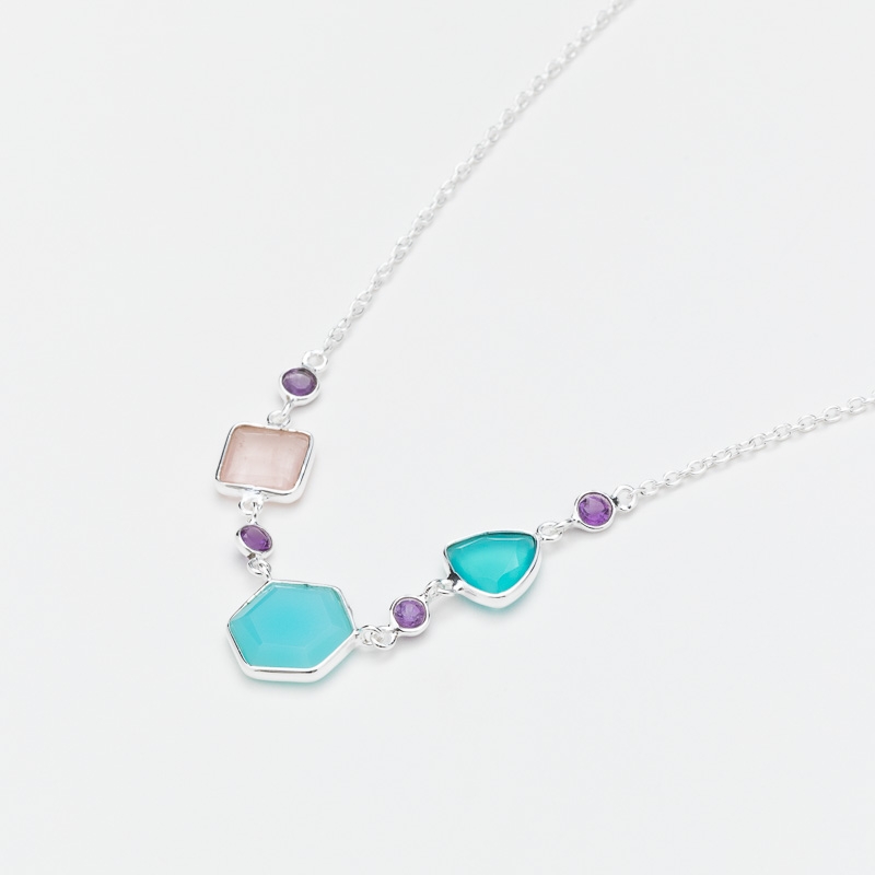 Collier en argent décoré d'acqua calcédoine, d'améthyste et de quartz rose