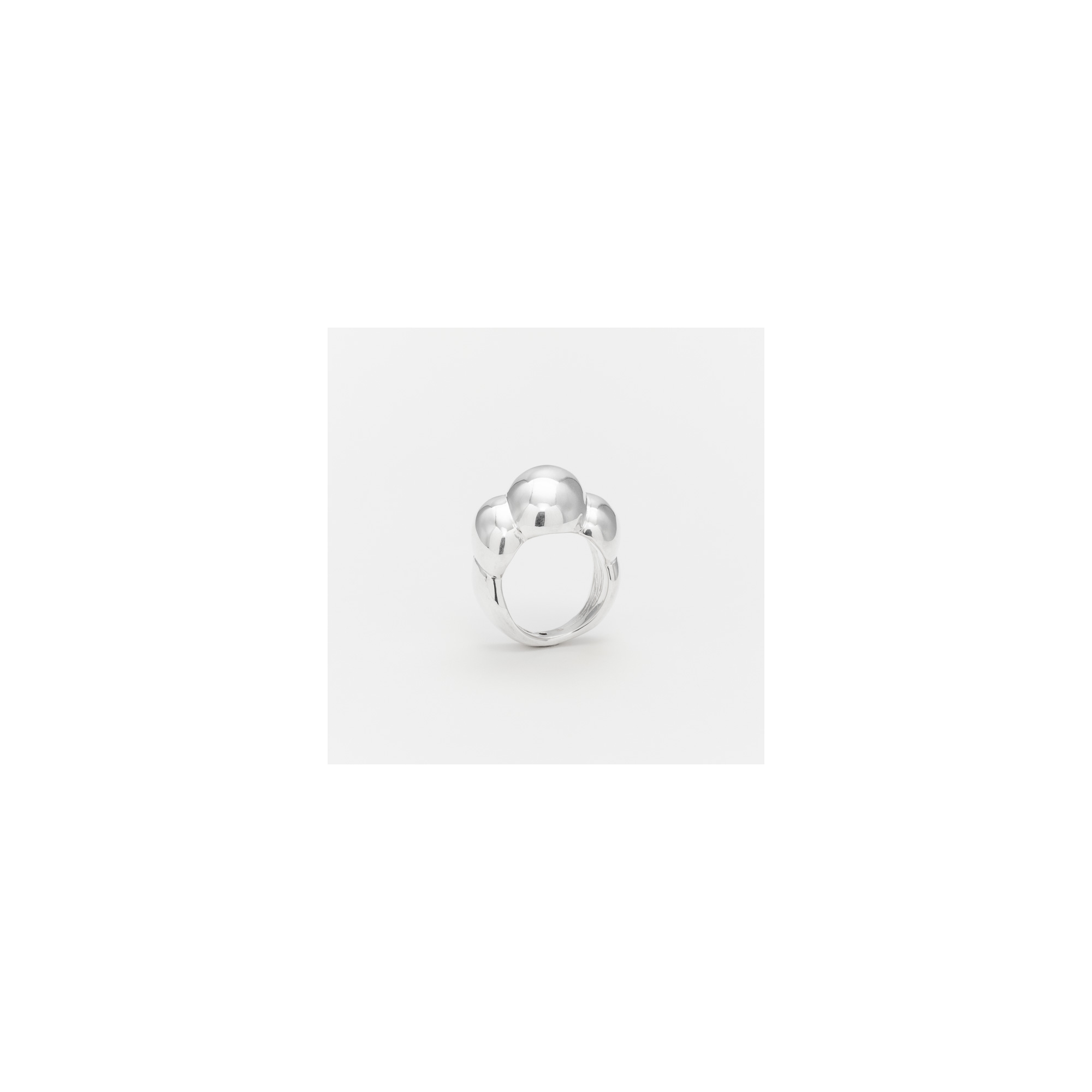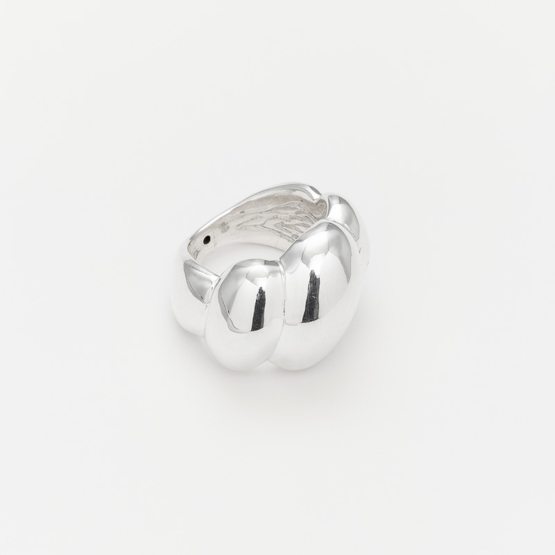 Bague en argent thermoformée composée de 3 godrons de différentes tailles et inclinés.