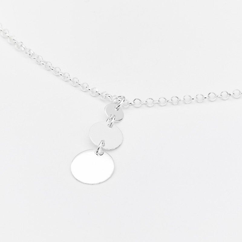 Collier en argent composé d'une chainette et de 3 petits ronds de différentes tailles pendants.Longueur : 43 cm