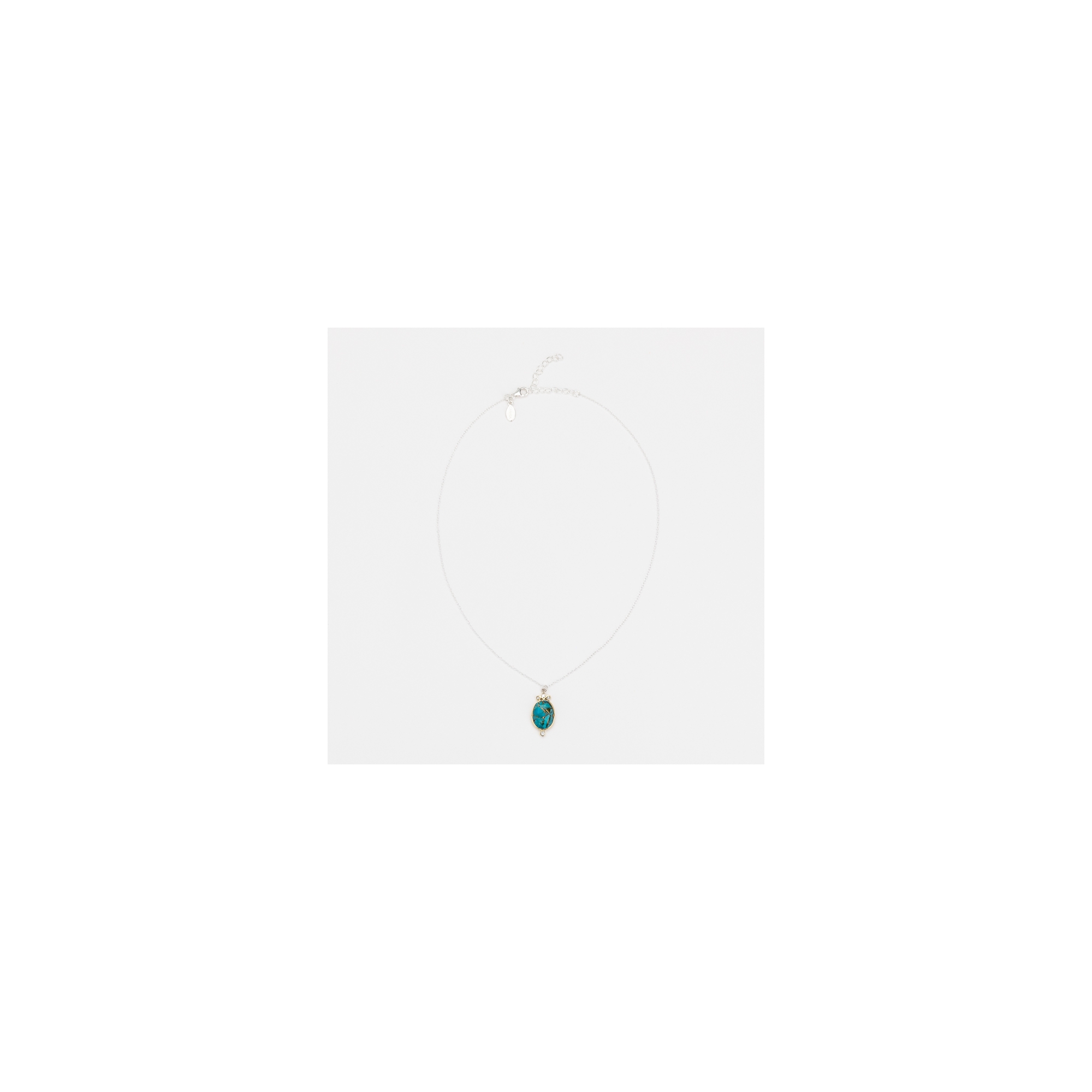 Collier en argent composé d'une chainette en argent et d'un pendentif en copper turquoise décoré de 4 oxydes blancs