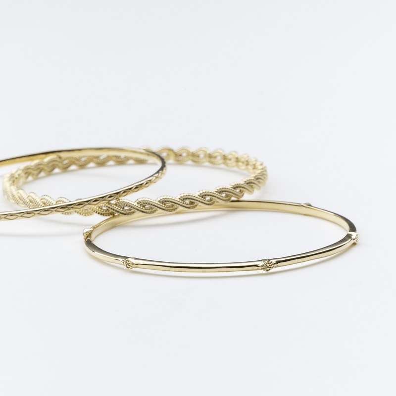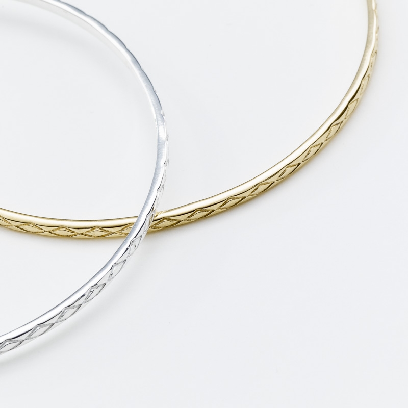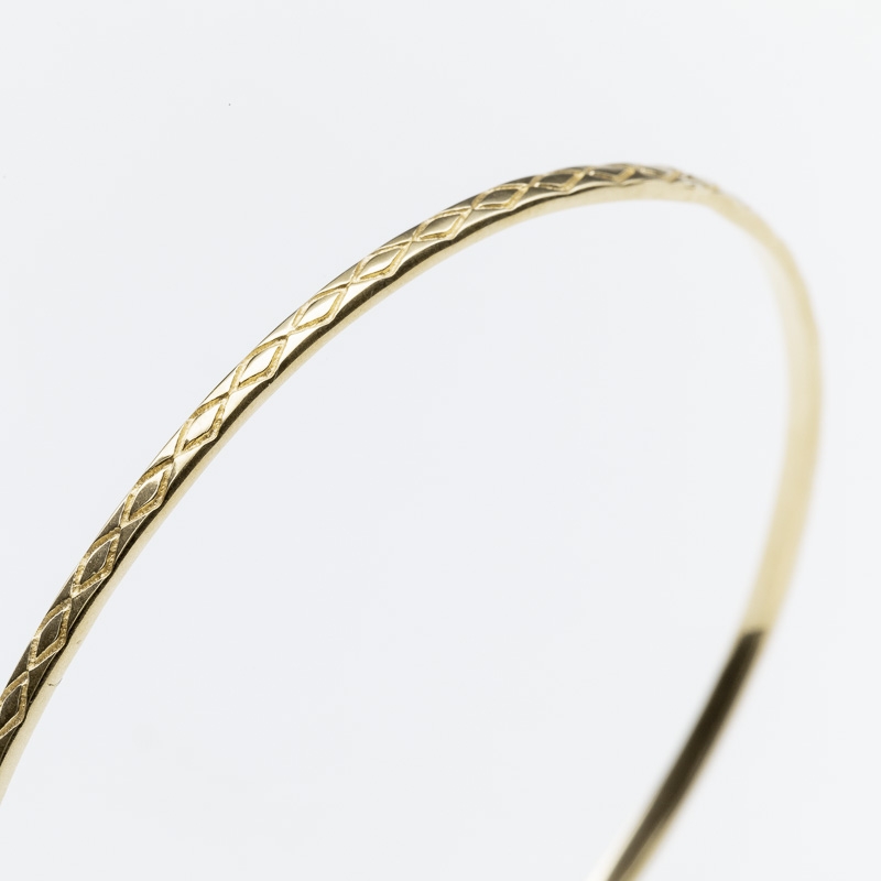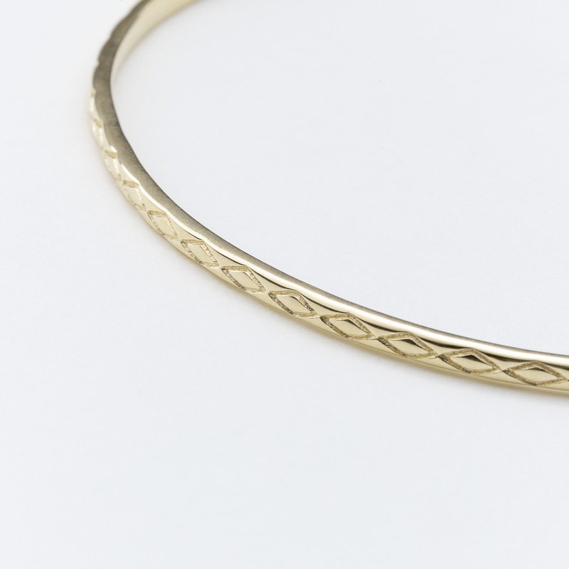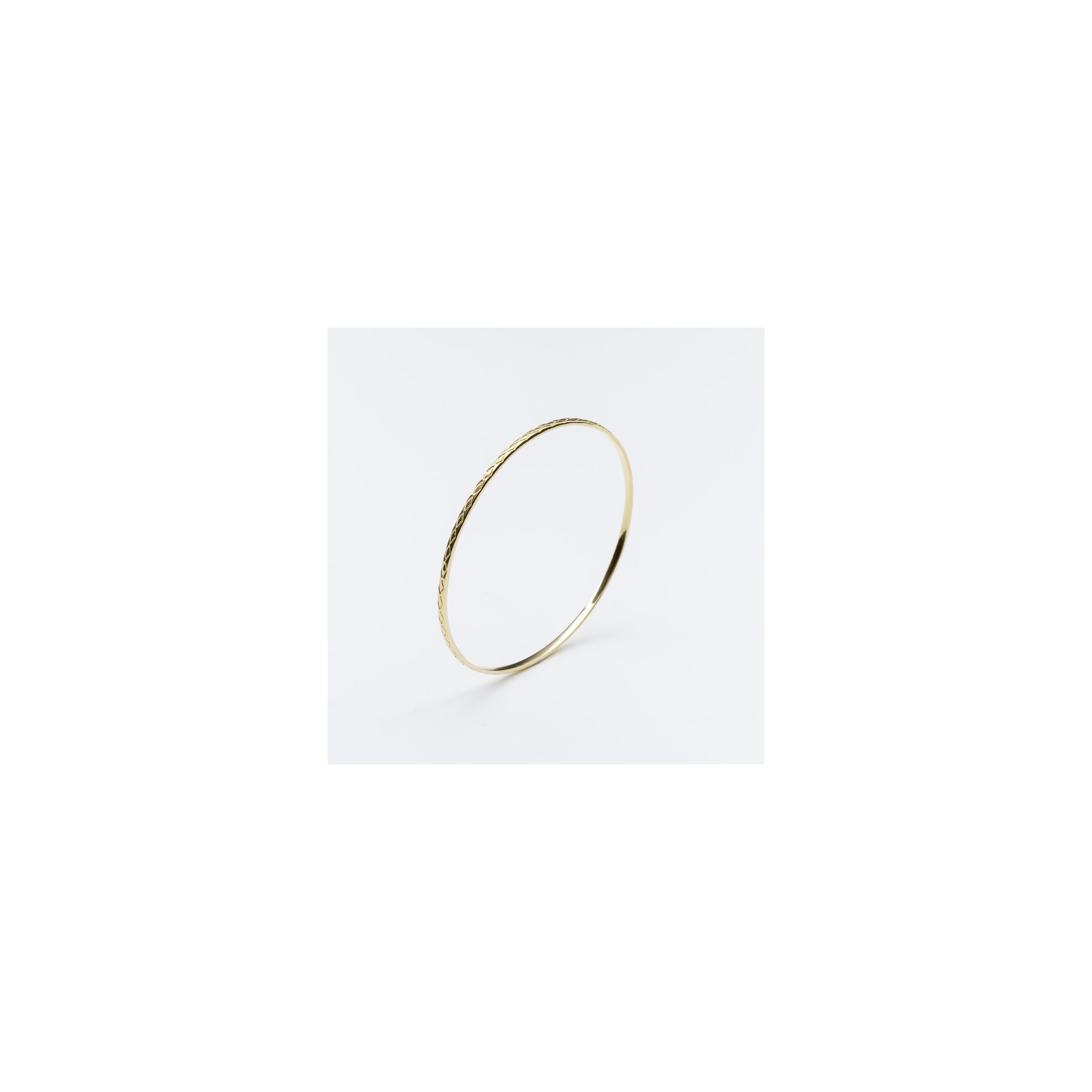 Bracelet bangle rond en laiton doré décoré de petits traits en forme de losange