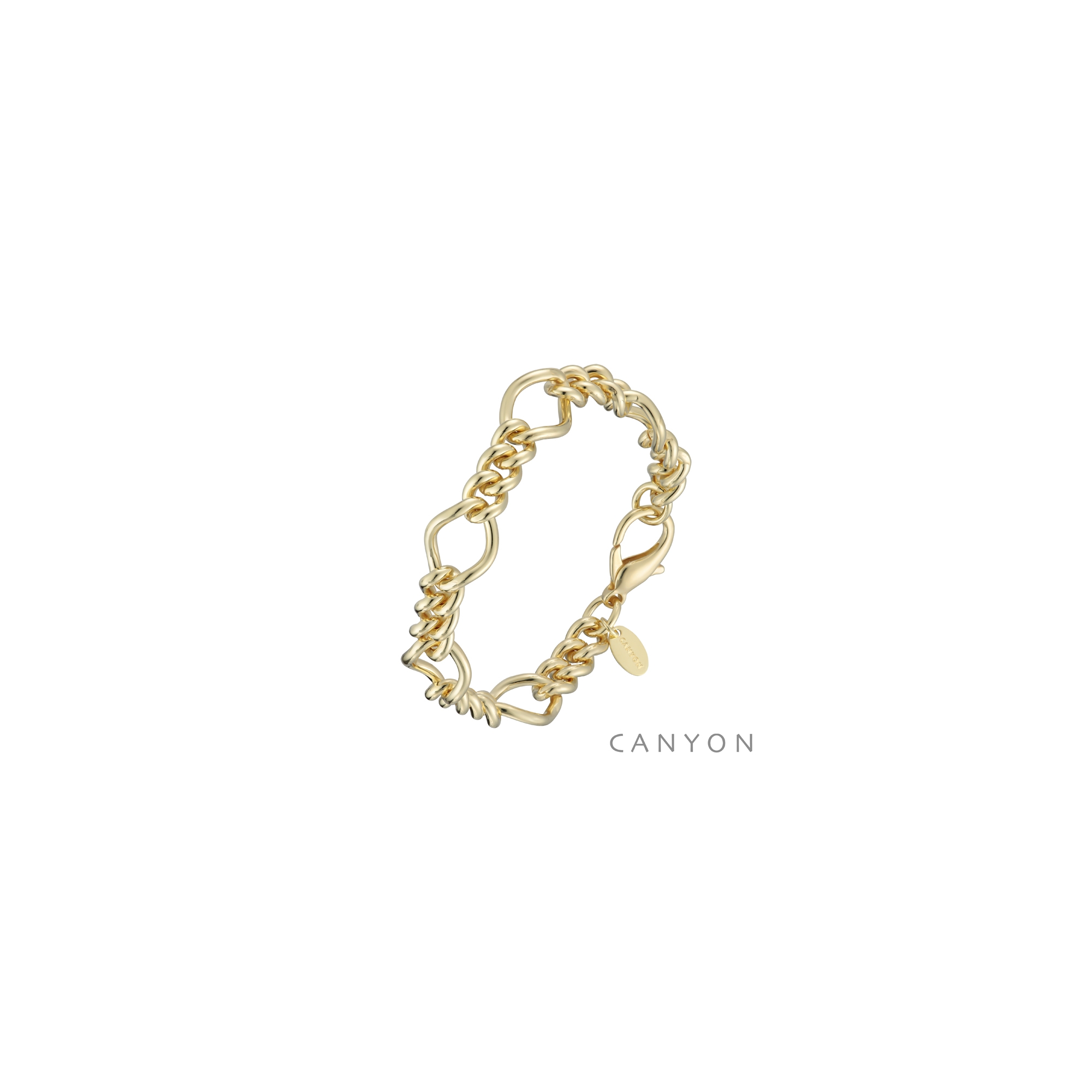 Bracelet en laiton dore chaine formee de sequences composees d'un losange arrondi et de 3 maillons dodus.