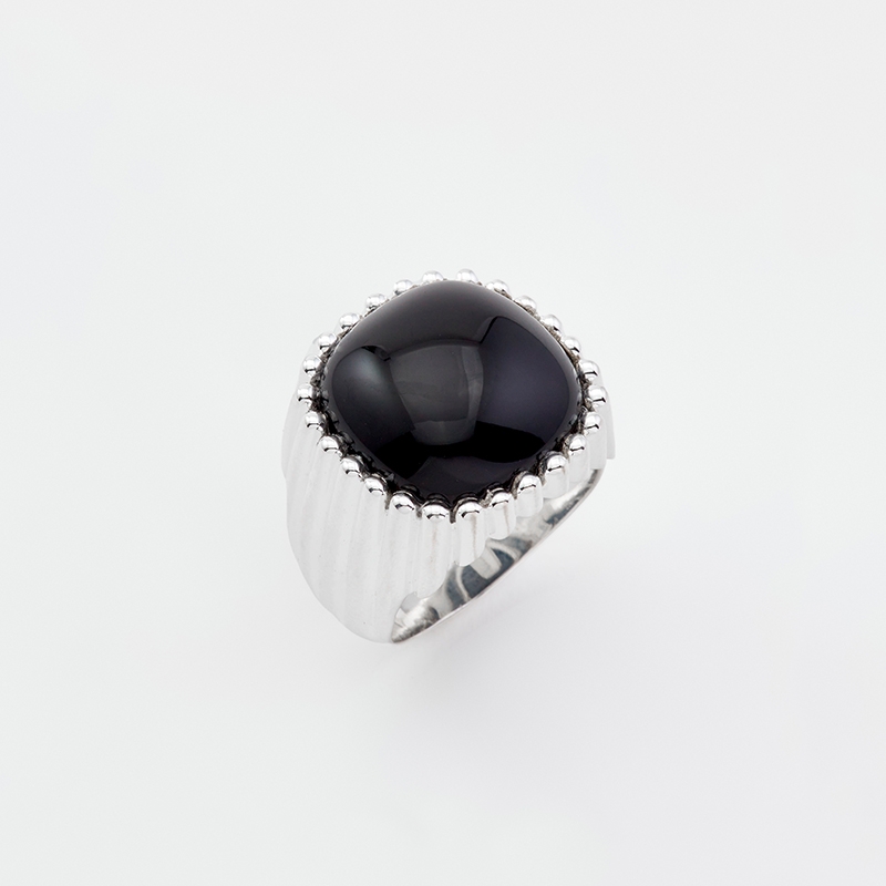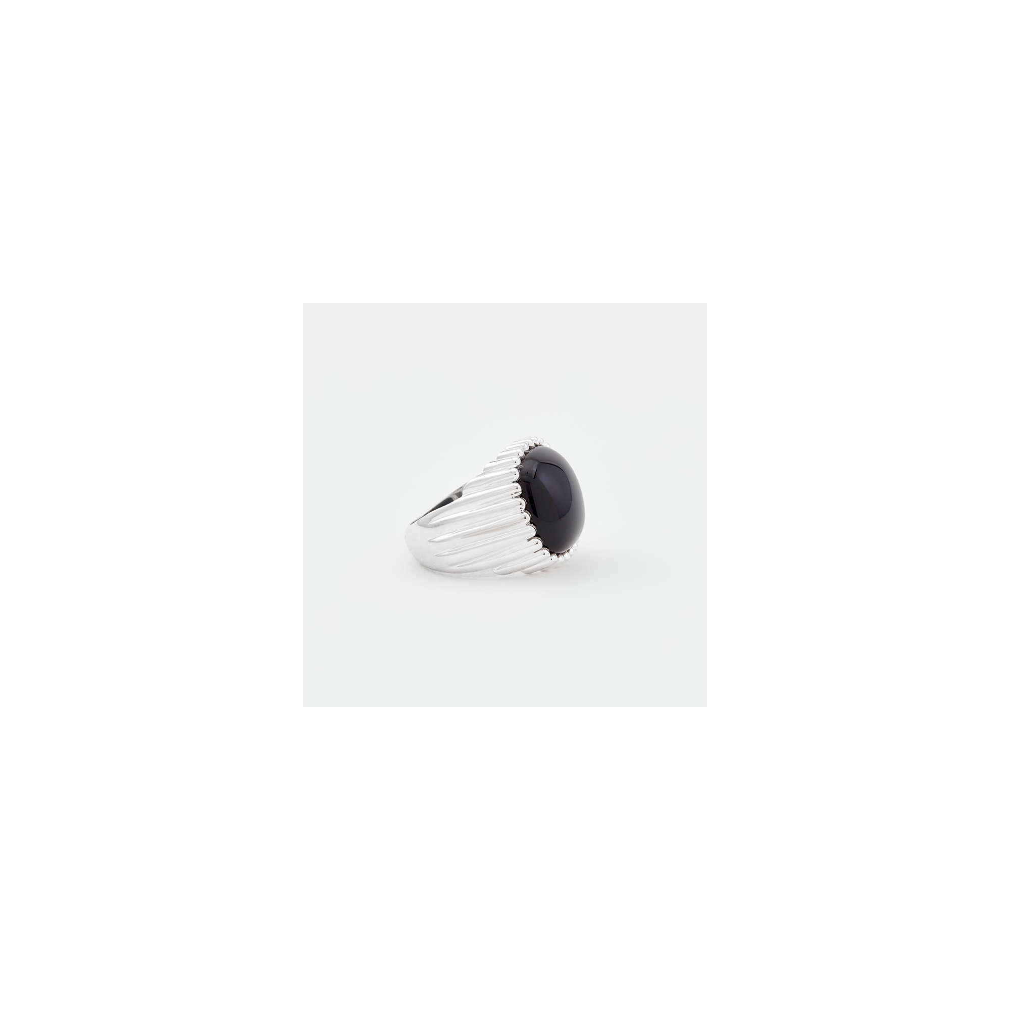 Bague en argent composée d'un grand carré d'onyx noir serti de fin godrons se terminant par de micro boules