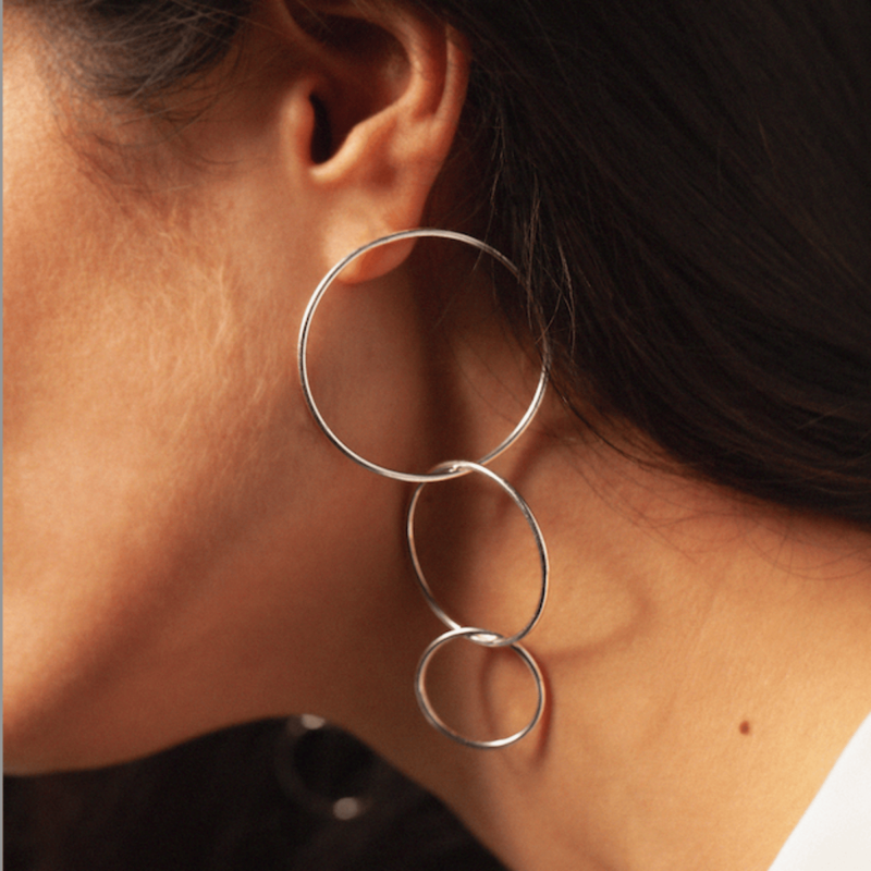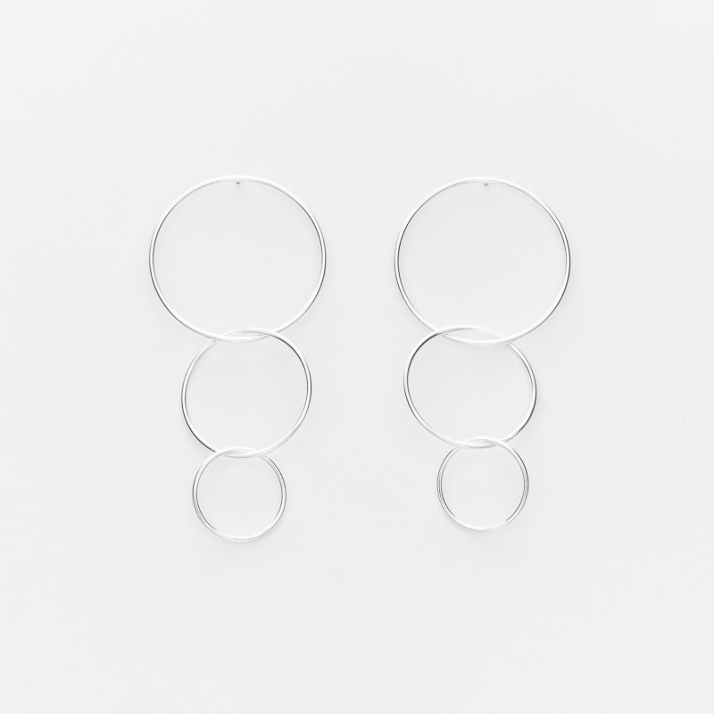 Boucles d'oreille pendantes en argent composées de 3 cercles de différentes tailles