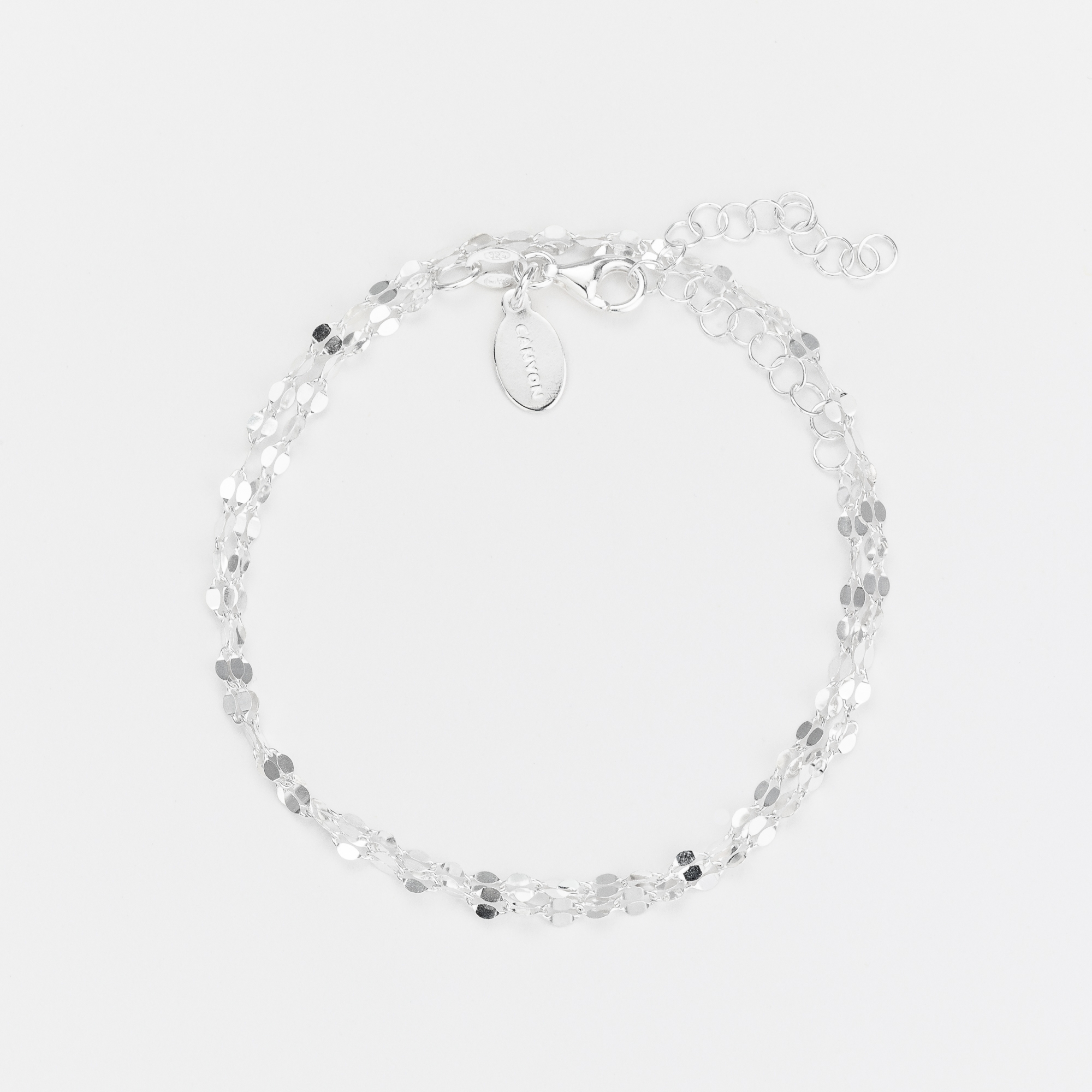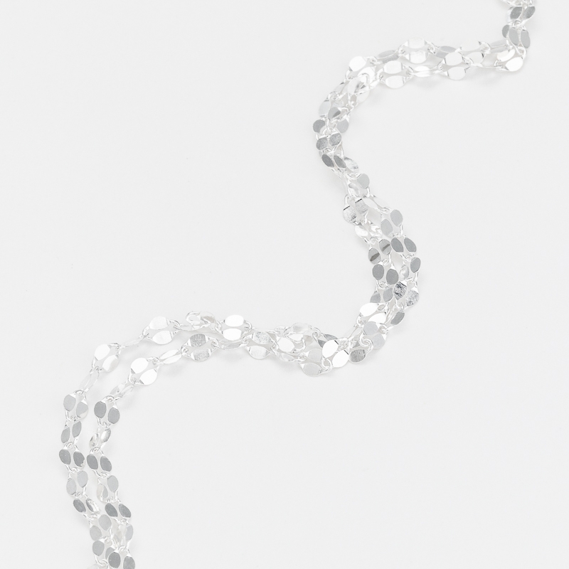 Bracelet double tour en argent constitué de petits ovales plats, fendus et fins