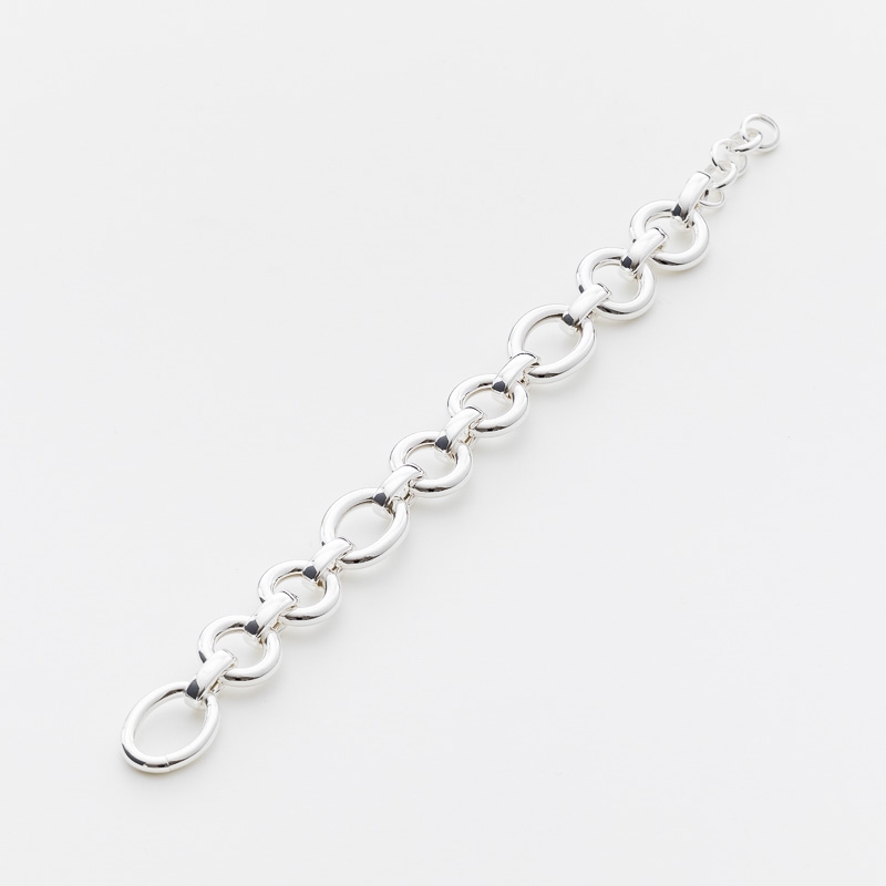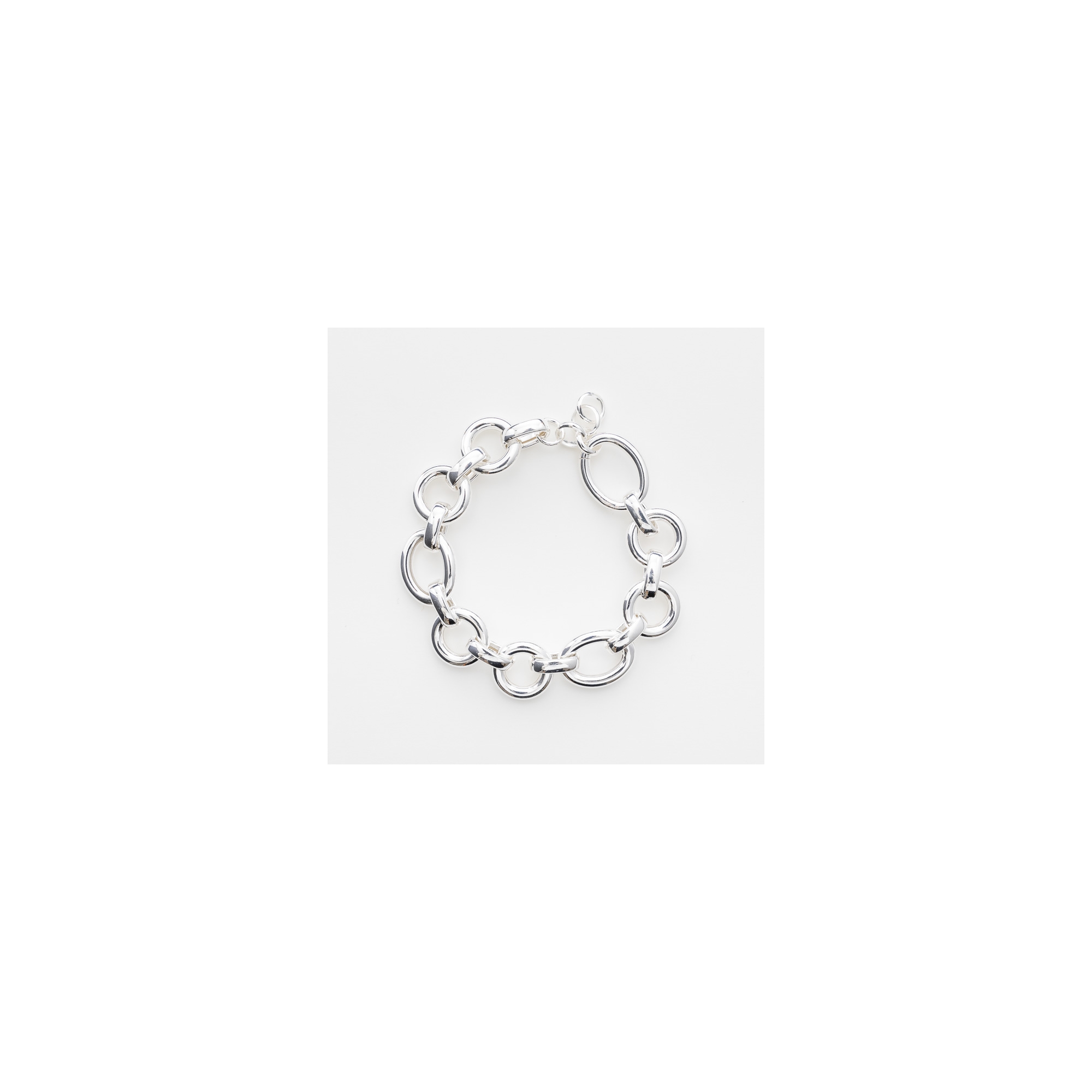 Bracelet en argent constitué de séquences d'un maillon ovale lisse et de 2 maillons ronds