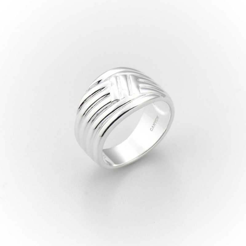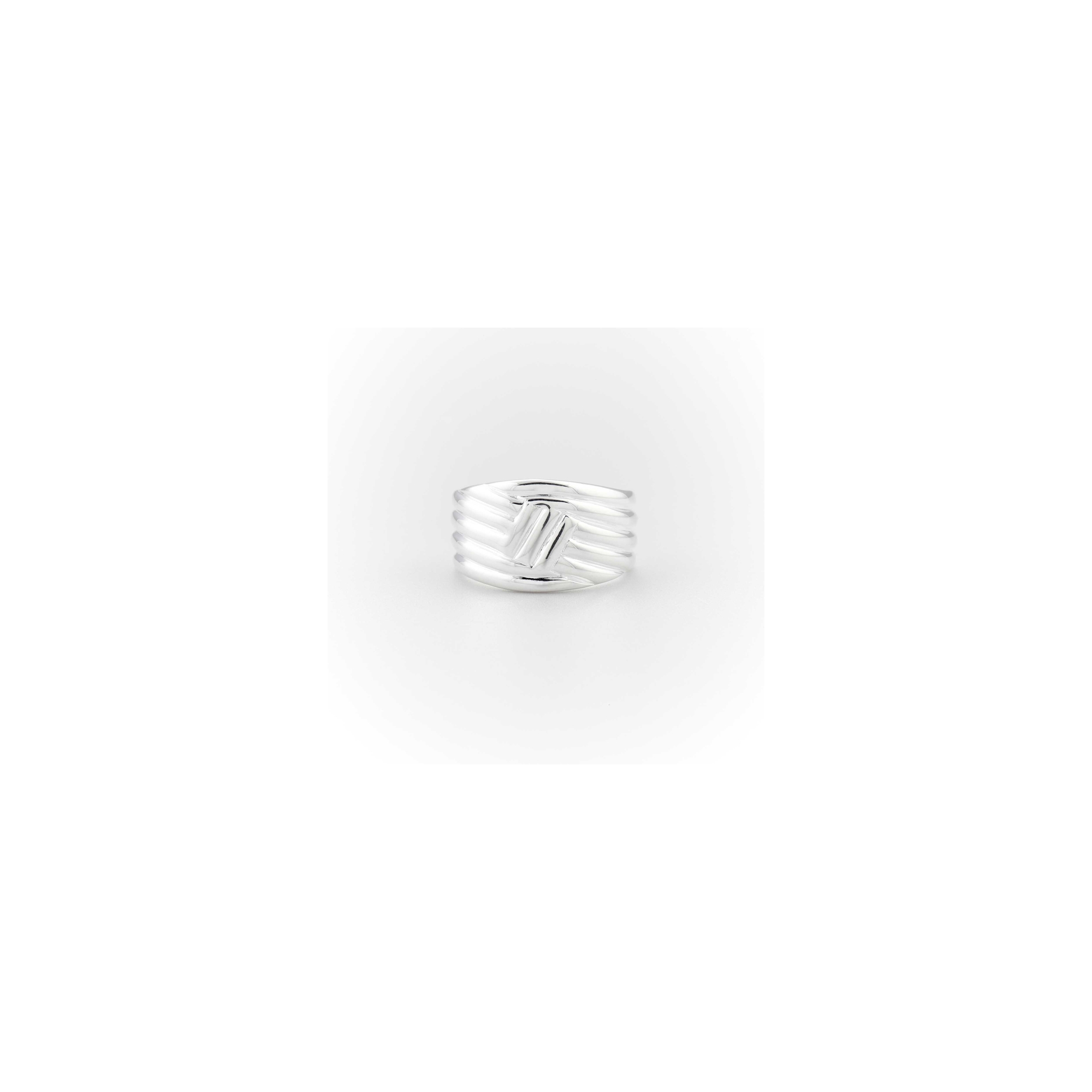 Bague argent formée d'un large anneau décoré de demi joncs de différentes tailles et allant dans des directions différentes