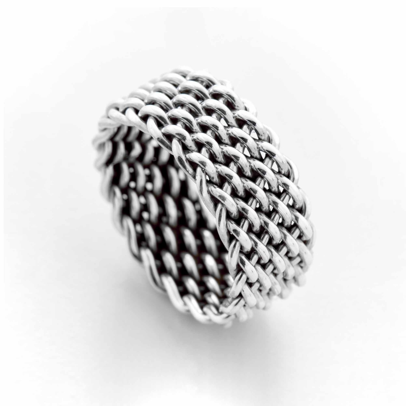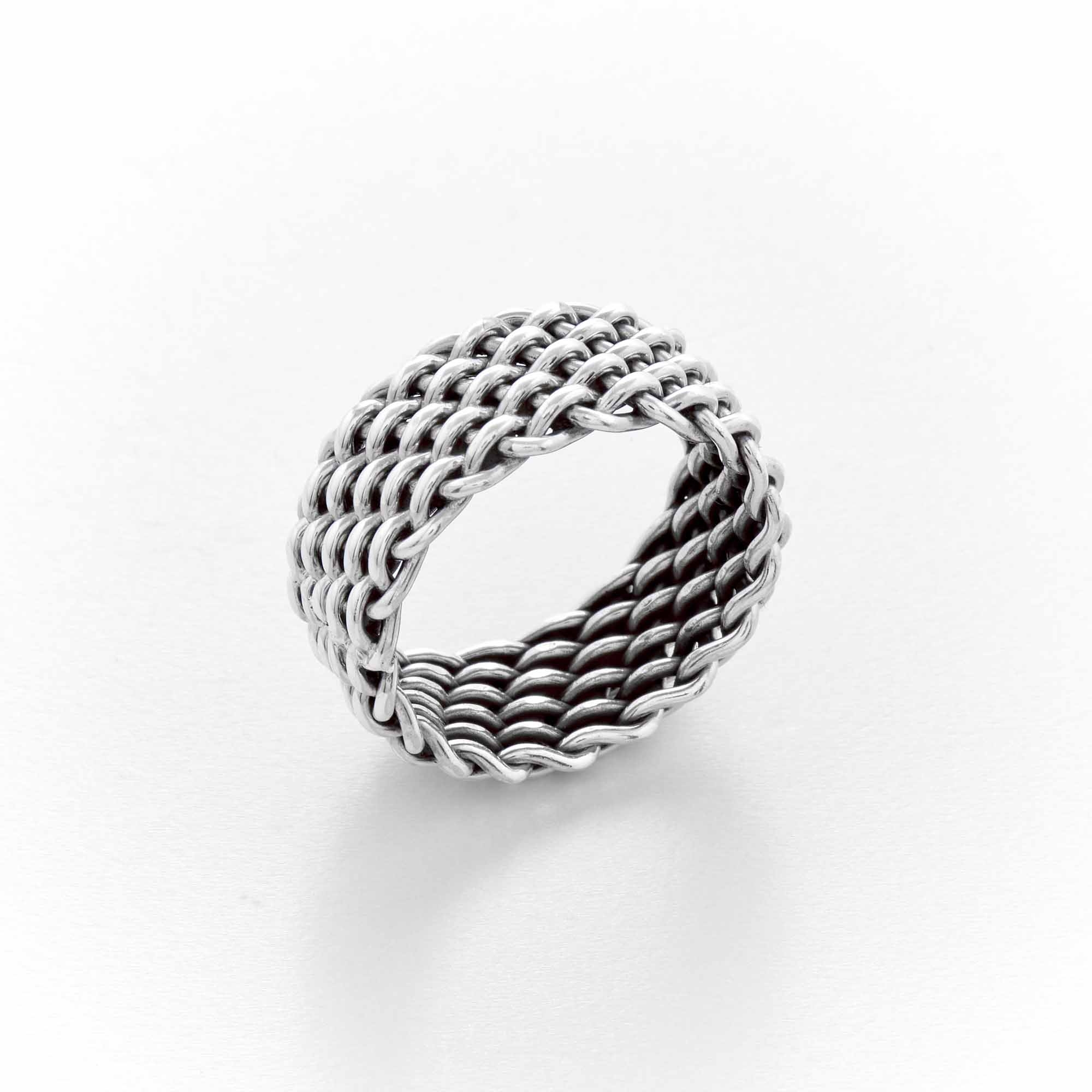 Bague argent composée de fils finement tressés formant une alliance haute.