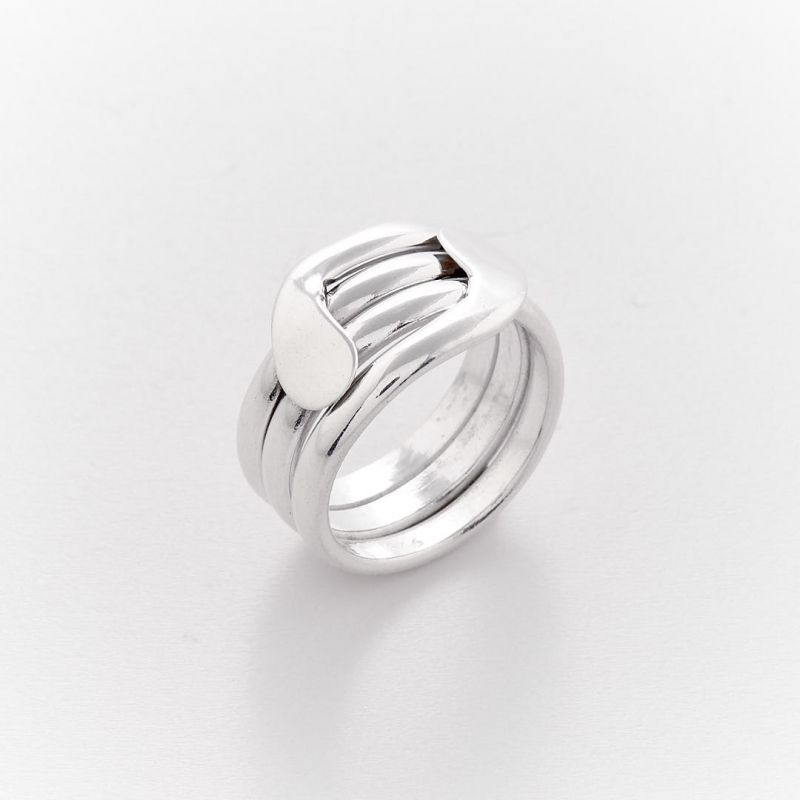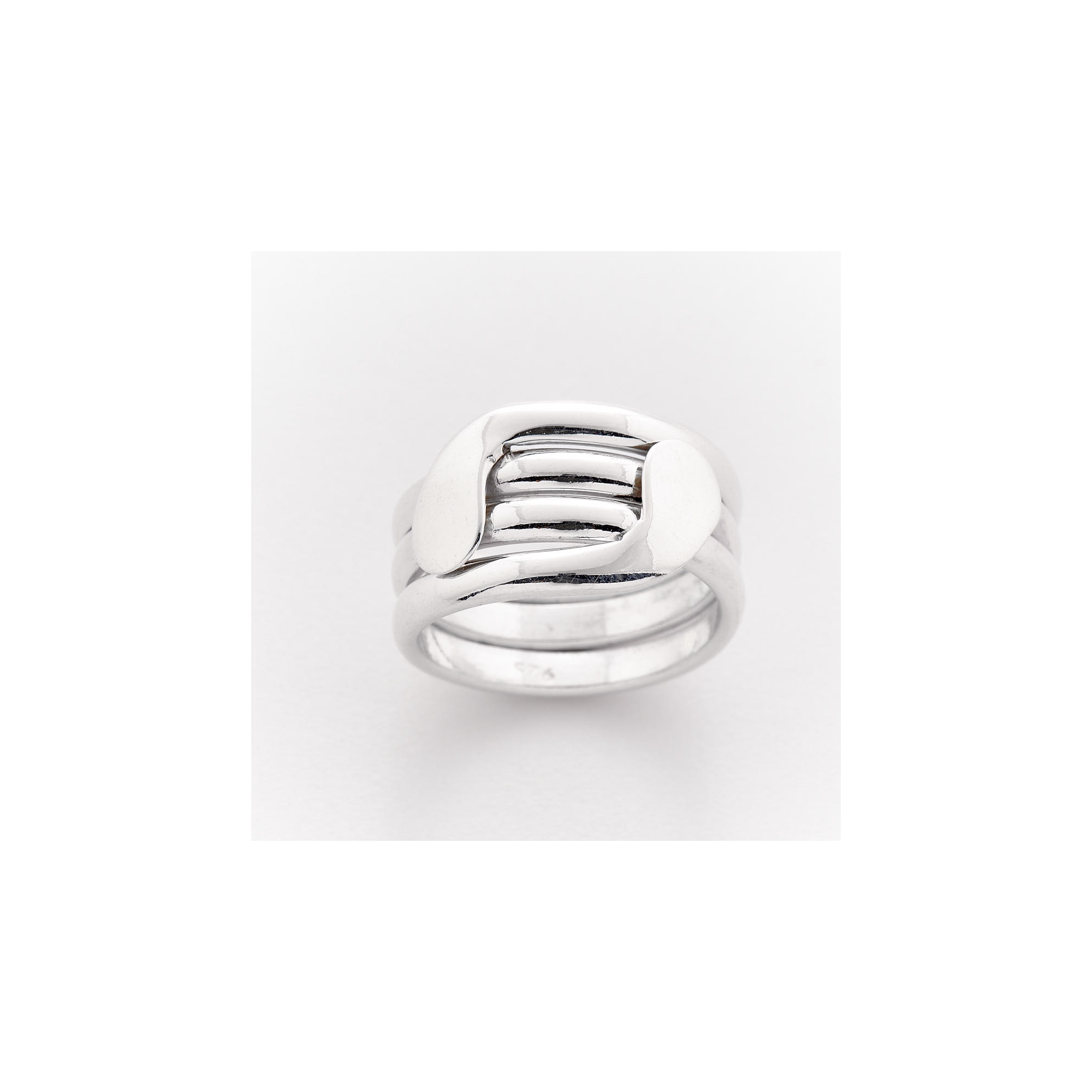 Bague argent formée de 2 anneaux demi jonc insérés entre 2 anneaux plats formant comme une chevalière.