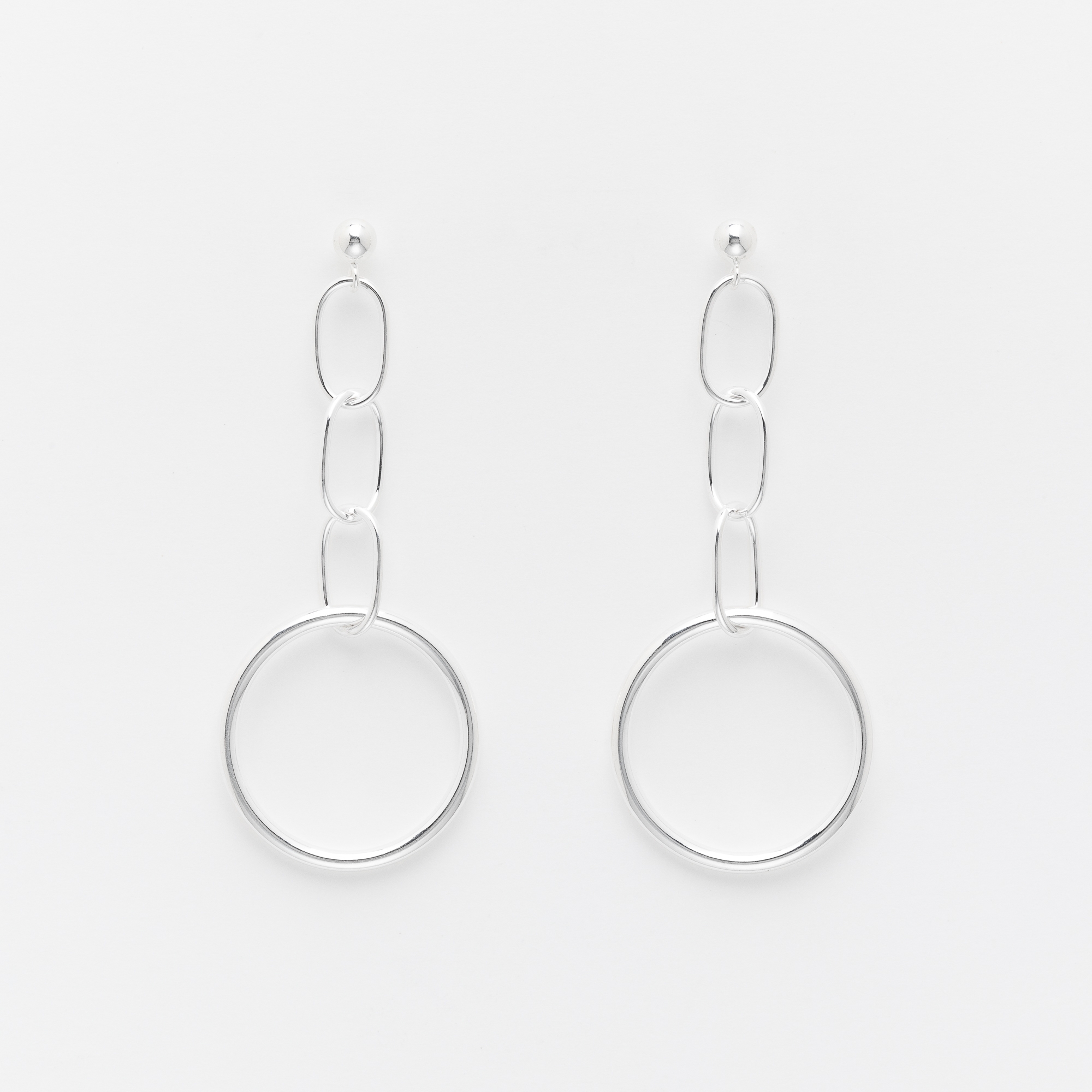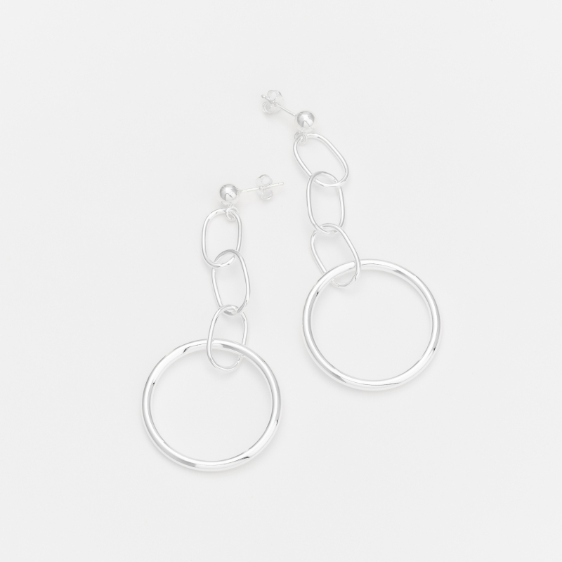 Boucles d'oreilles argent pendantes composées d'une boule puce de 3 petits anneaux fins ovales et dun grand anneau rond.