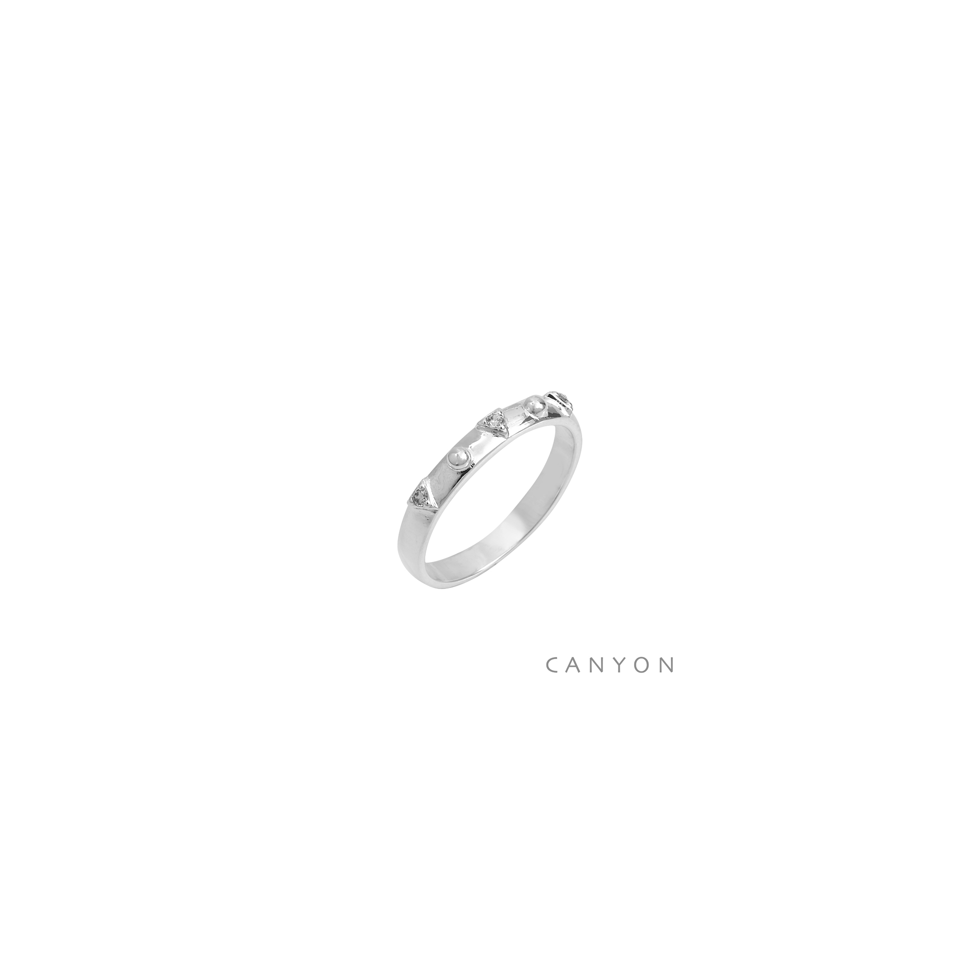 Bague anneau en argent décoré de demi boules et de triangles en oxyde