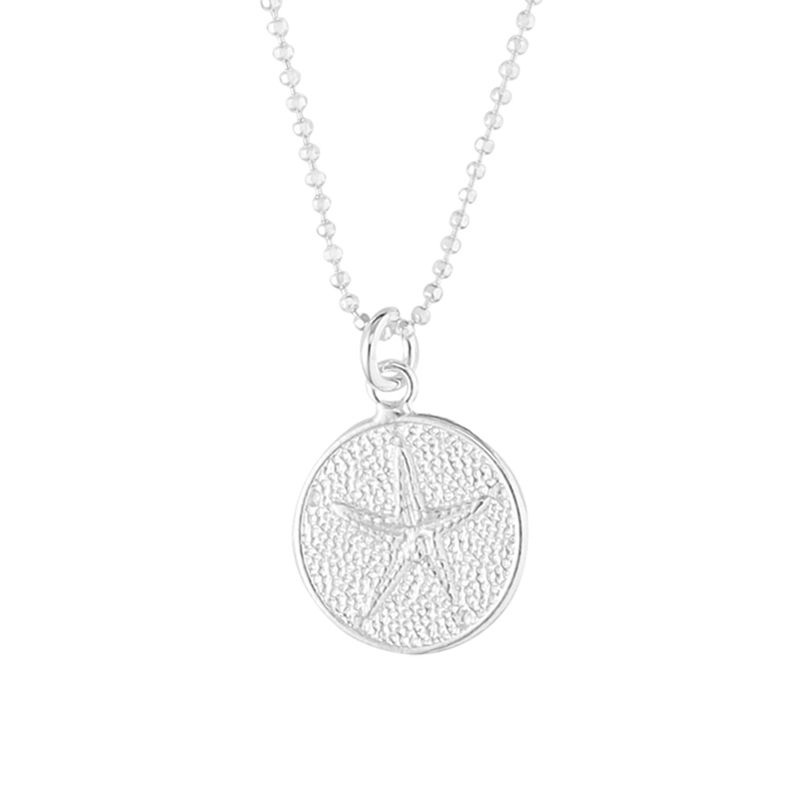 Collier en argent composé d'un rang de chaine microboules et d'une médaille êtoile de mer