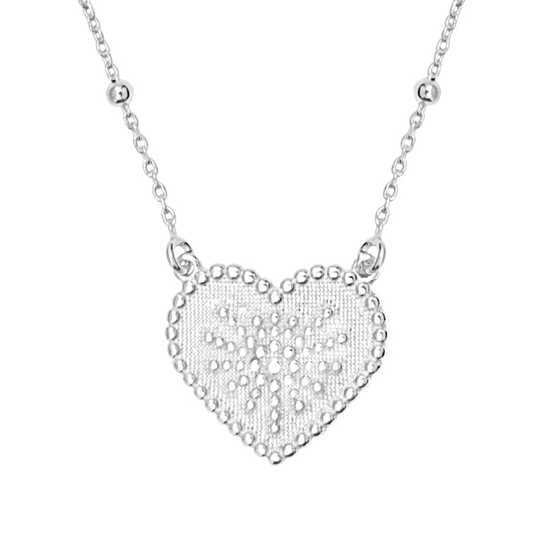 Collier argent composé d'une chainette et d'un petit coeur décoré de microboules