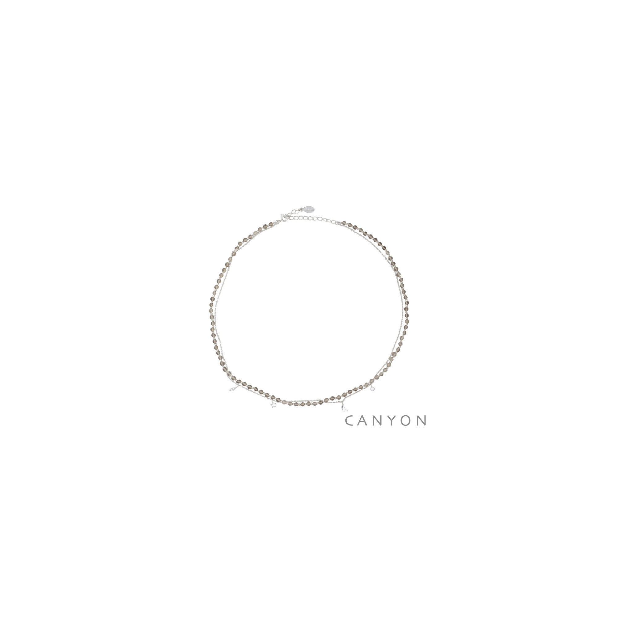Collier en argent formé d'un rang de perles de quartz fumé et d'une chainette décorée de micro charms.