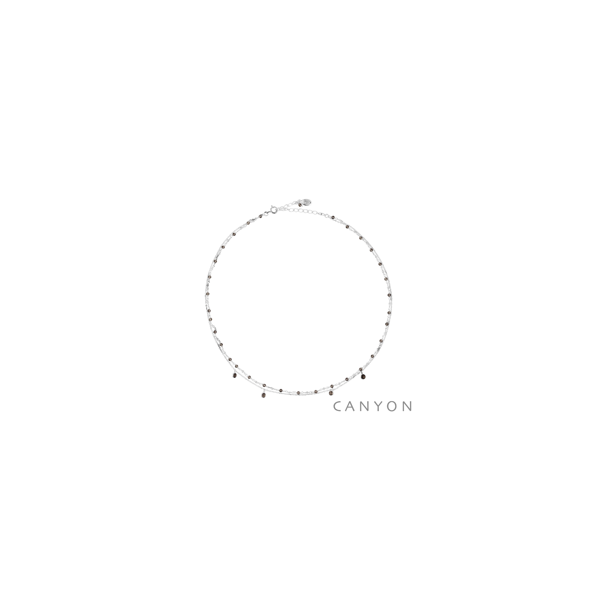 Collier en argent formé de 2 chainettes une ornée de 4 perles de quartz fumé pendantes et l'autre étant un mix de chainette et de perles de quartz fumé