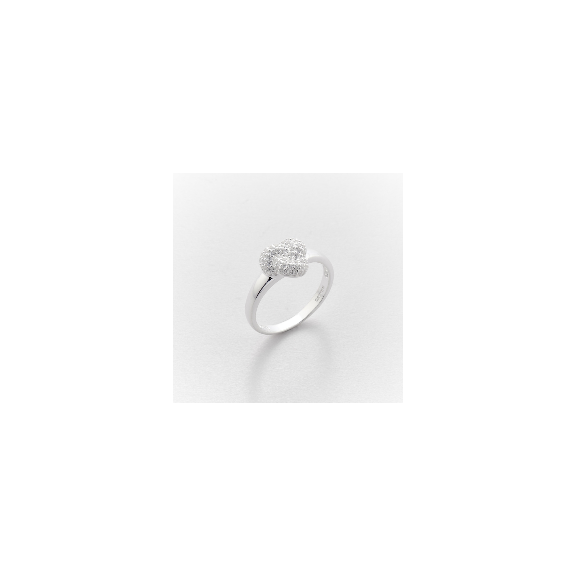 Bague argent composée d'un anneau fin décoré de 3 anneaux imbriqués et dodus pavés d'oxydes.