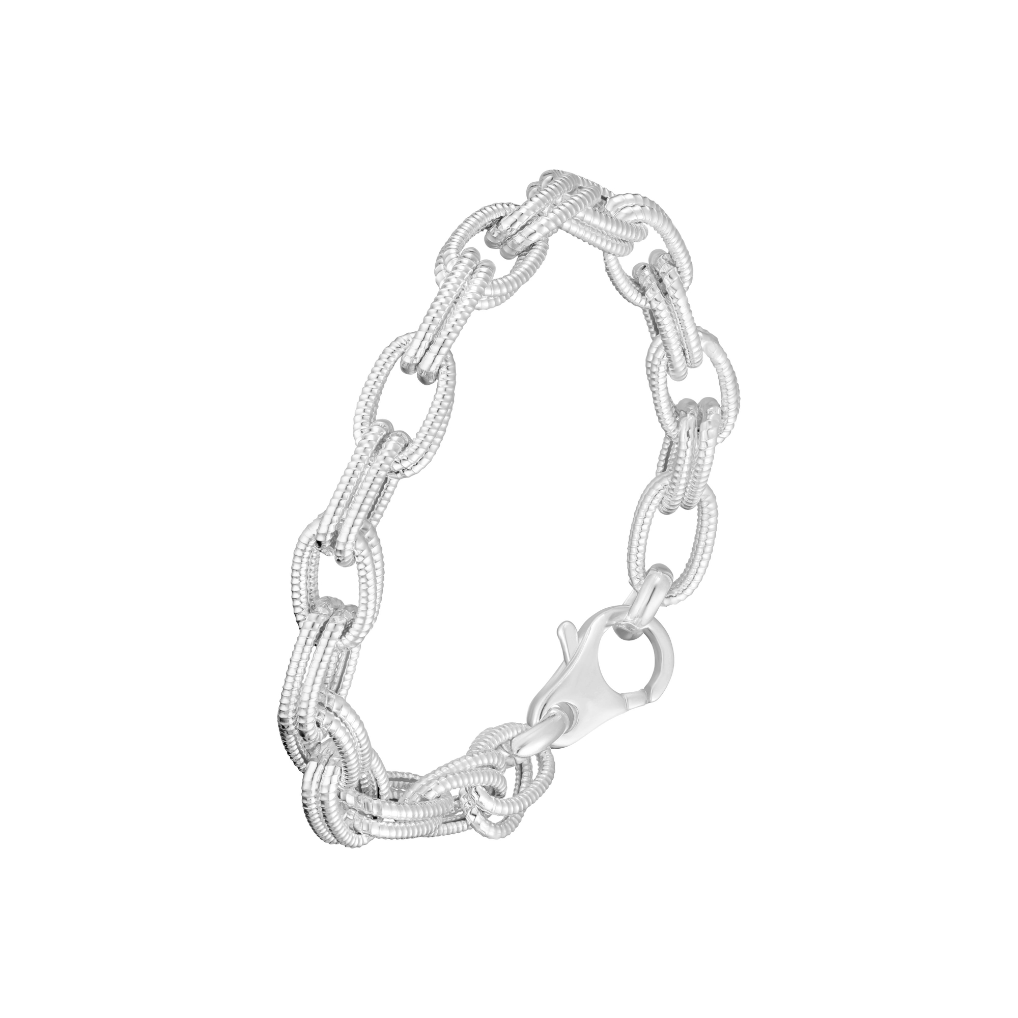 Bracelet en argent constitué d'une chaîne composée de maillons ovales doubles et martelés.