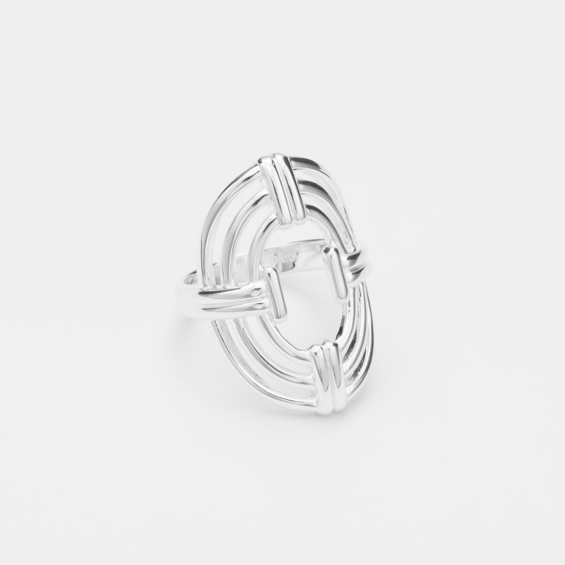 Bague en argent style Art Déco formée d'ovales décorés de barres.