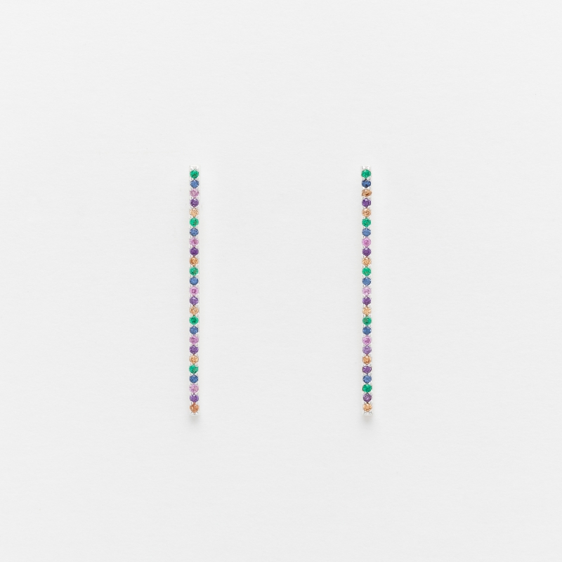 Boucles d'oreilles puces en argent constituées d'une longue ligne d'oxydes multicolores.