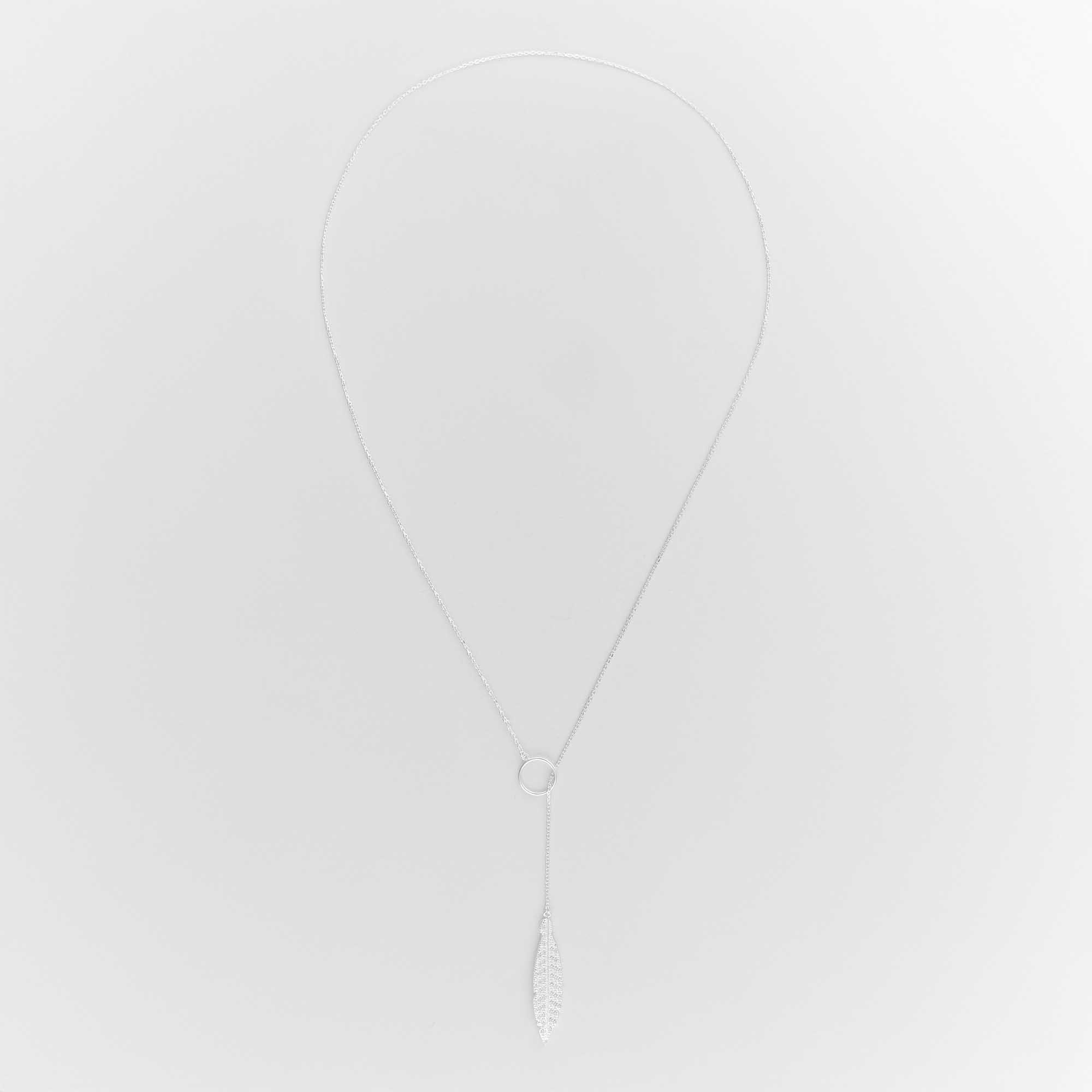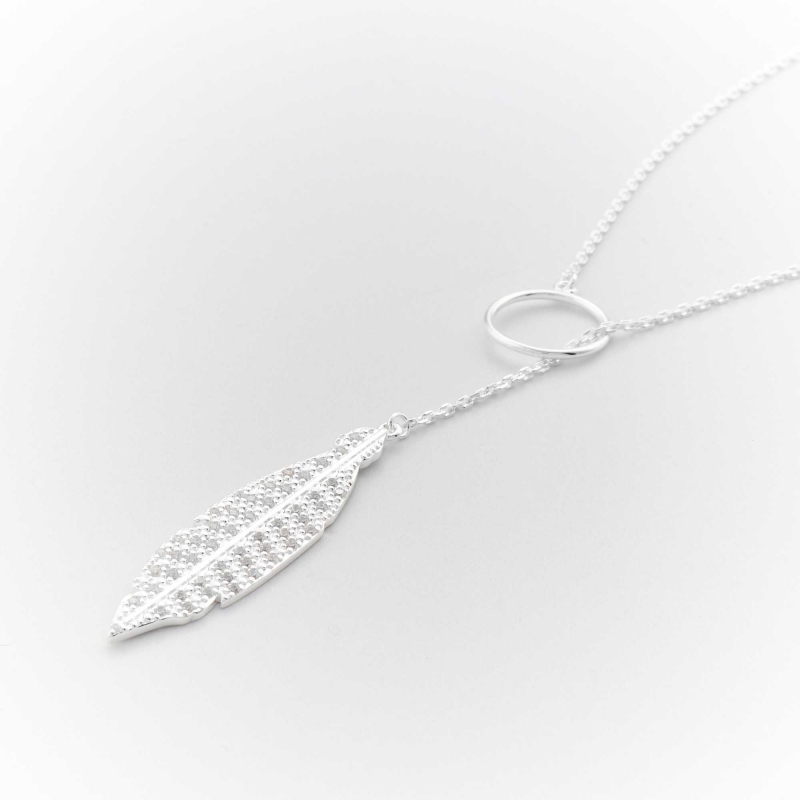 Collier cravate en argent 925 décoré d'une plume ornée d'oxydes.